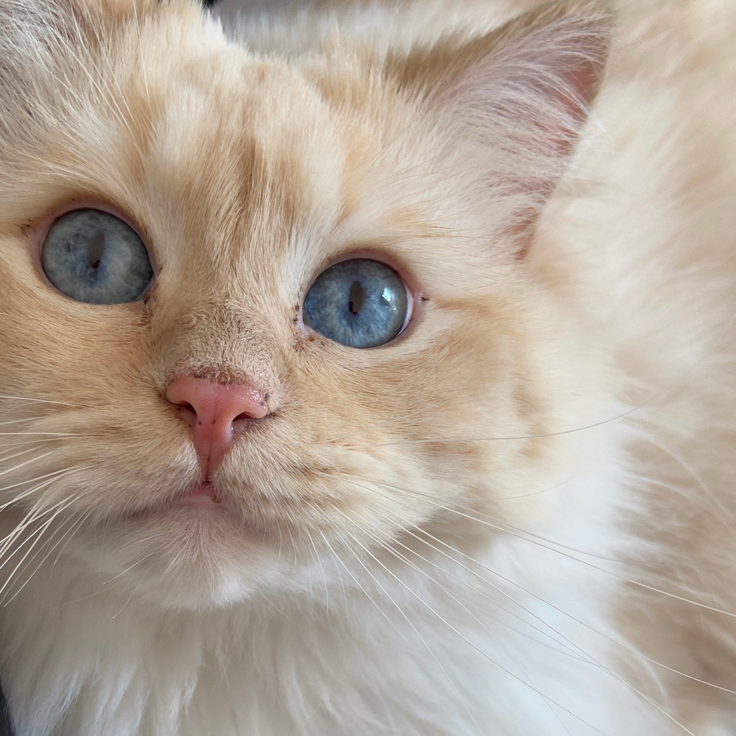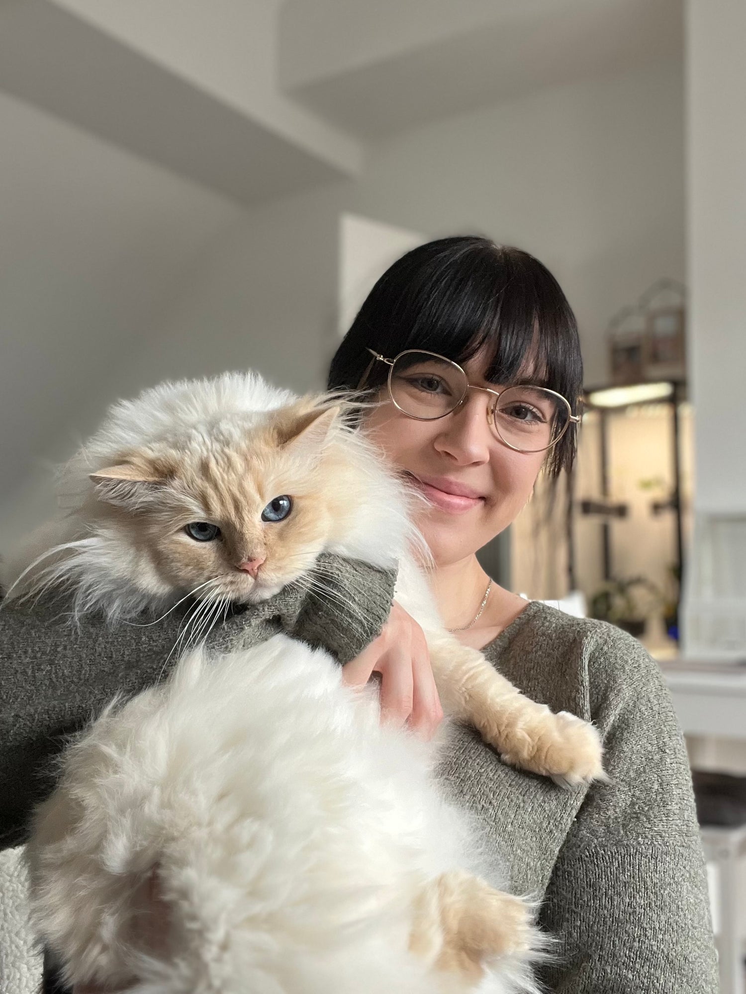 This is our cat. A Redpoint Lynx Ragdoll. My boyfriend gave her the name Miss Flauschig. I thought the name was fitting, which is why I've always used it since then. Her real name is Lena. She got the name from her previous owner. She came to live with us in 2022 because she couldn't get along with the other cats in her previous home. It was fate that we happened to be scrolling around on eBay the day she was offered for sale. We fell in love with her immediately. She completes us with her sweet, affectionate, and sometimes goofy nature.
