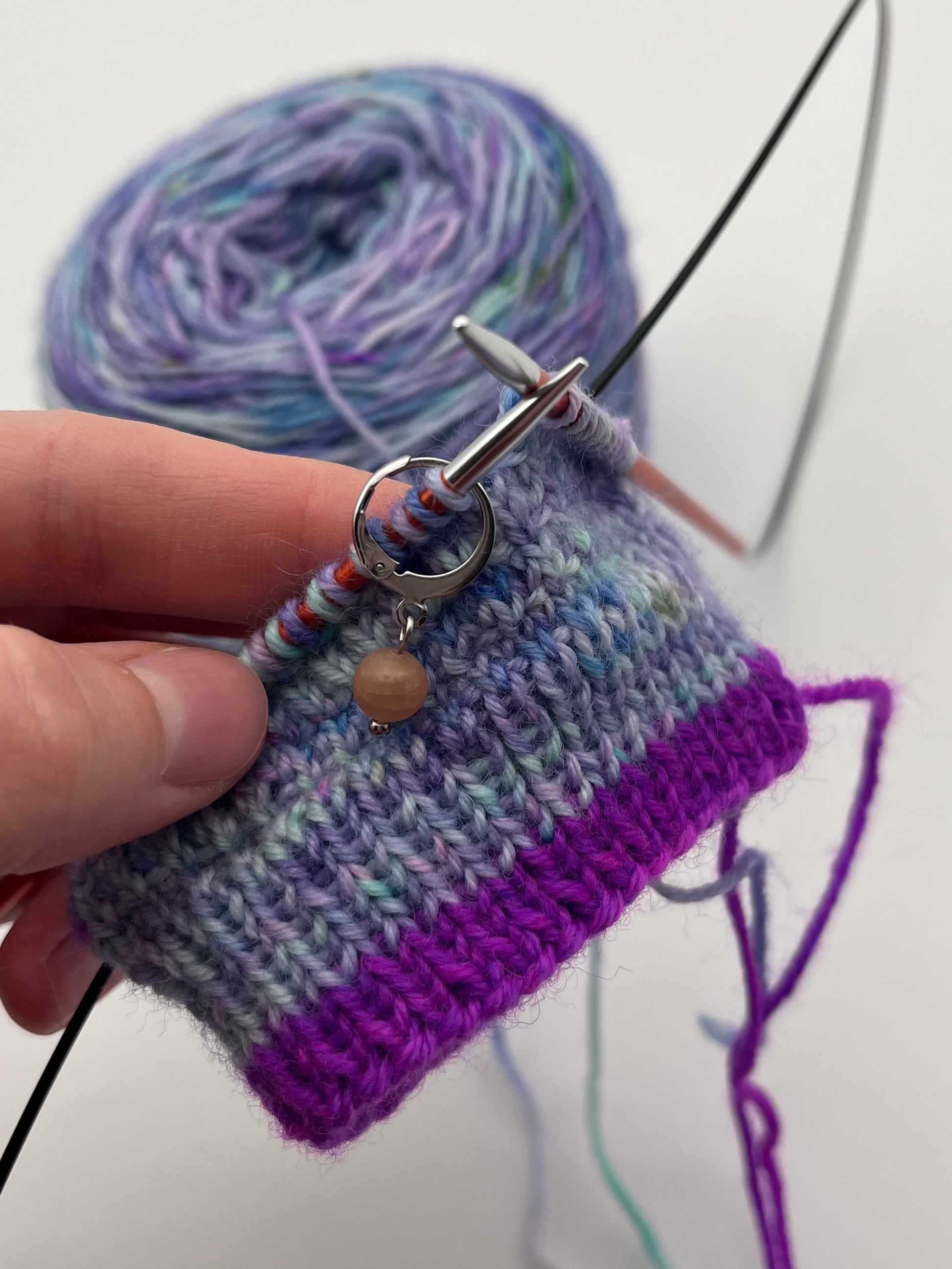 Achtung: Der Artikel beinhaltet nur den oder die gezeigten Maschenmarkierer. Wolle, Strickstücke oder Nadeln sind nicht enthalten.