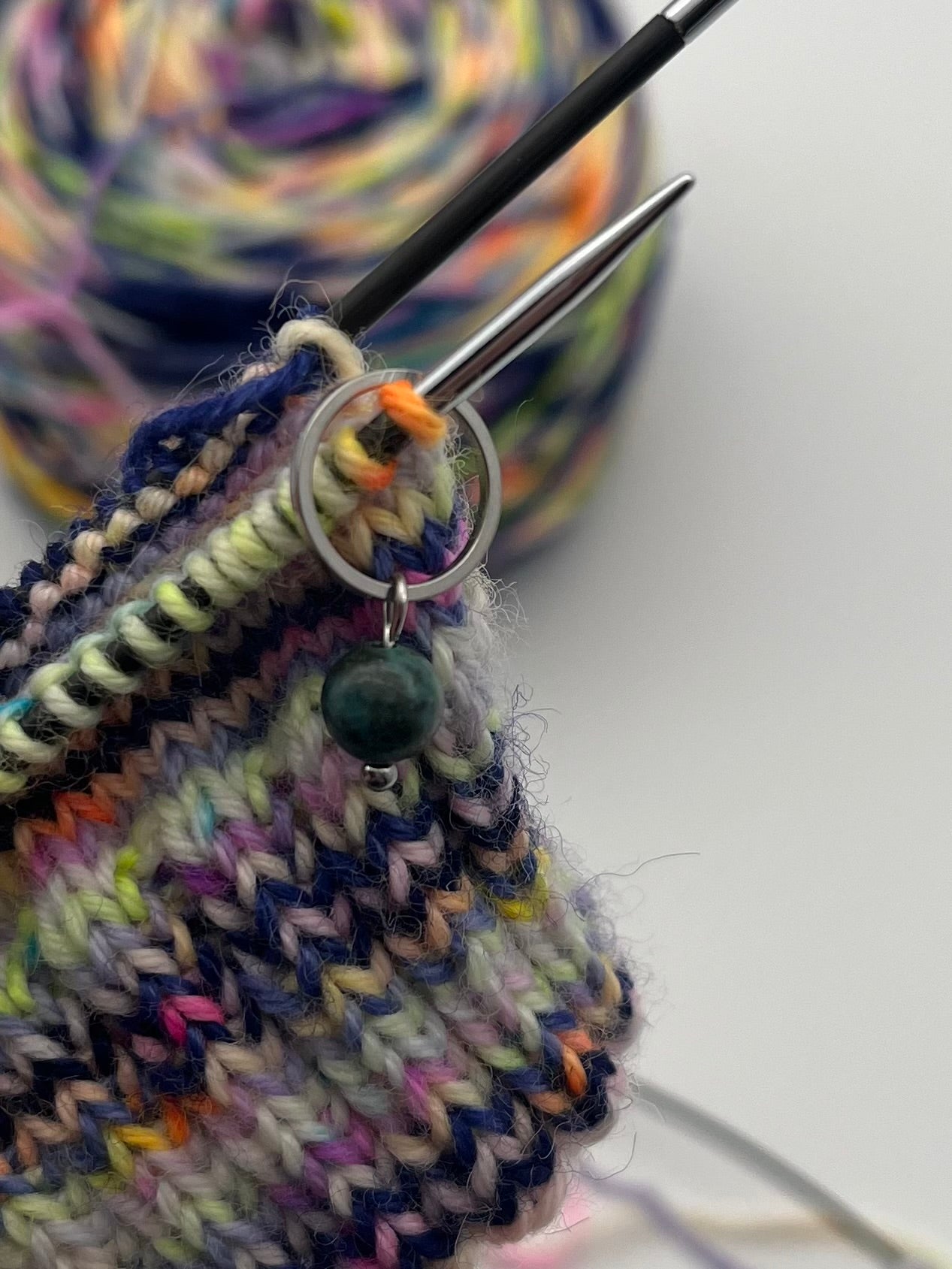 Achtung: Der Artikel beinhaltet nur den oder die gezeigten Maschenmarkierer. Wolle, Strickstücke oder Nadeln sind nicht enthalten.