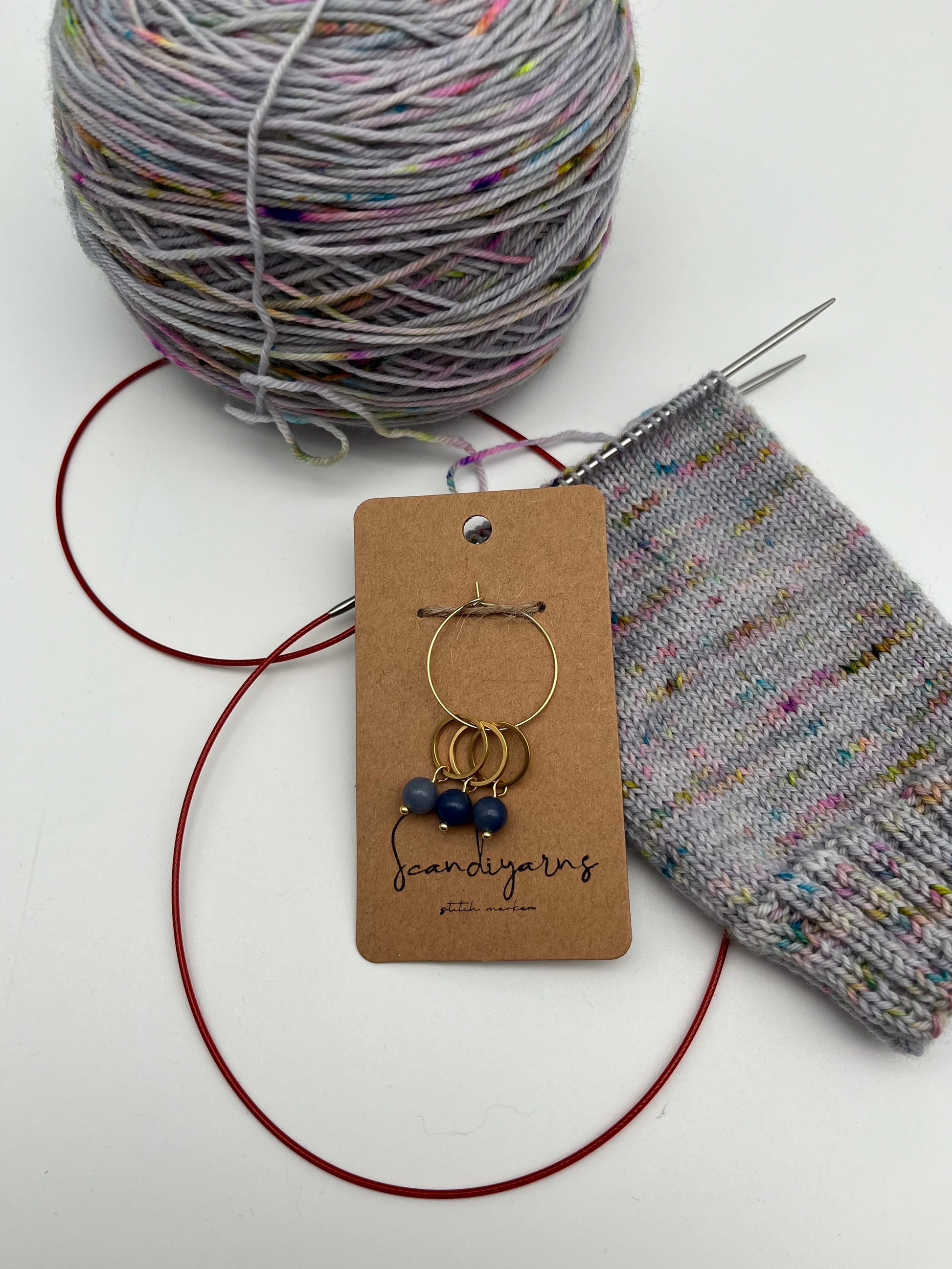 Die geschlossenen Ringe sind zum Stricken geeignet und zeigen euch Ende oder Anfang von Runden beim Stricken an. Sie können euch aufgrund der geschlossenen Form nicht von der Nadel rutschen.