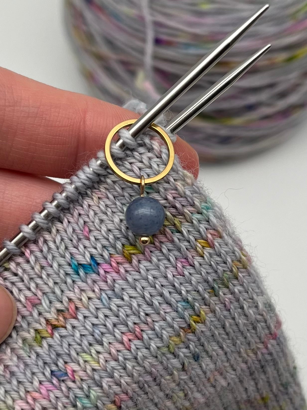 Die geschlossenen Ringe sind zum Stricken geeignet und zeigen euch Ende oder Anfang von Runden beim Stricken an. Sie können euch aufgrund der geschlossenen Form nicht von der Nadel rutschen.