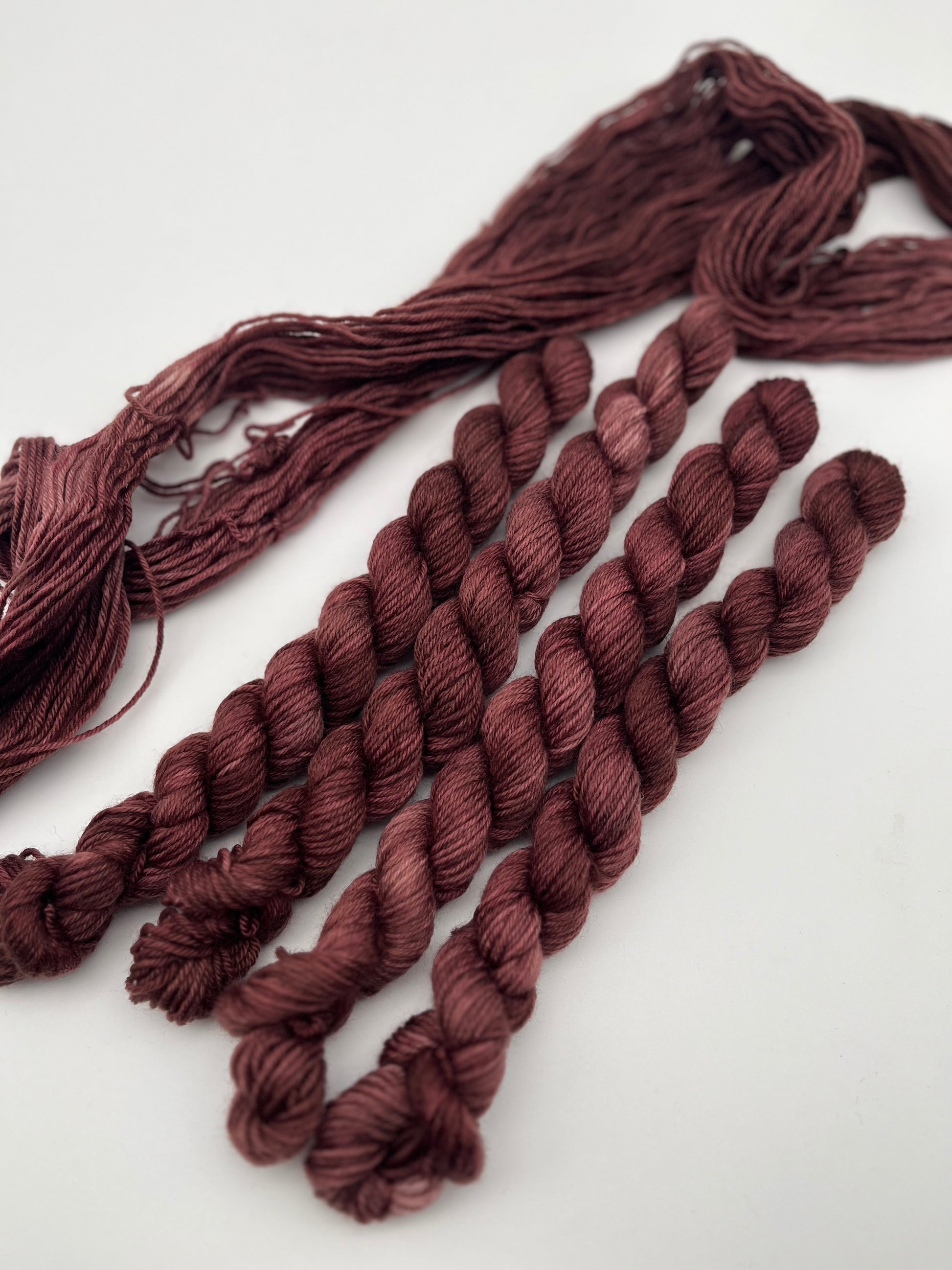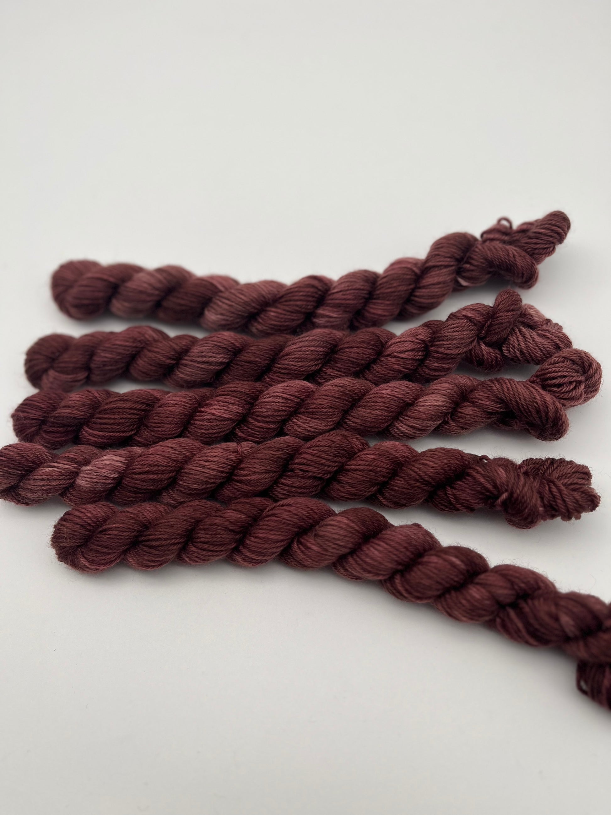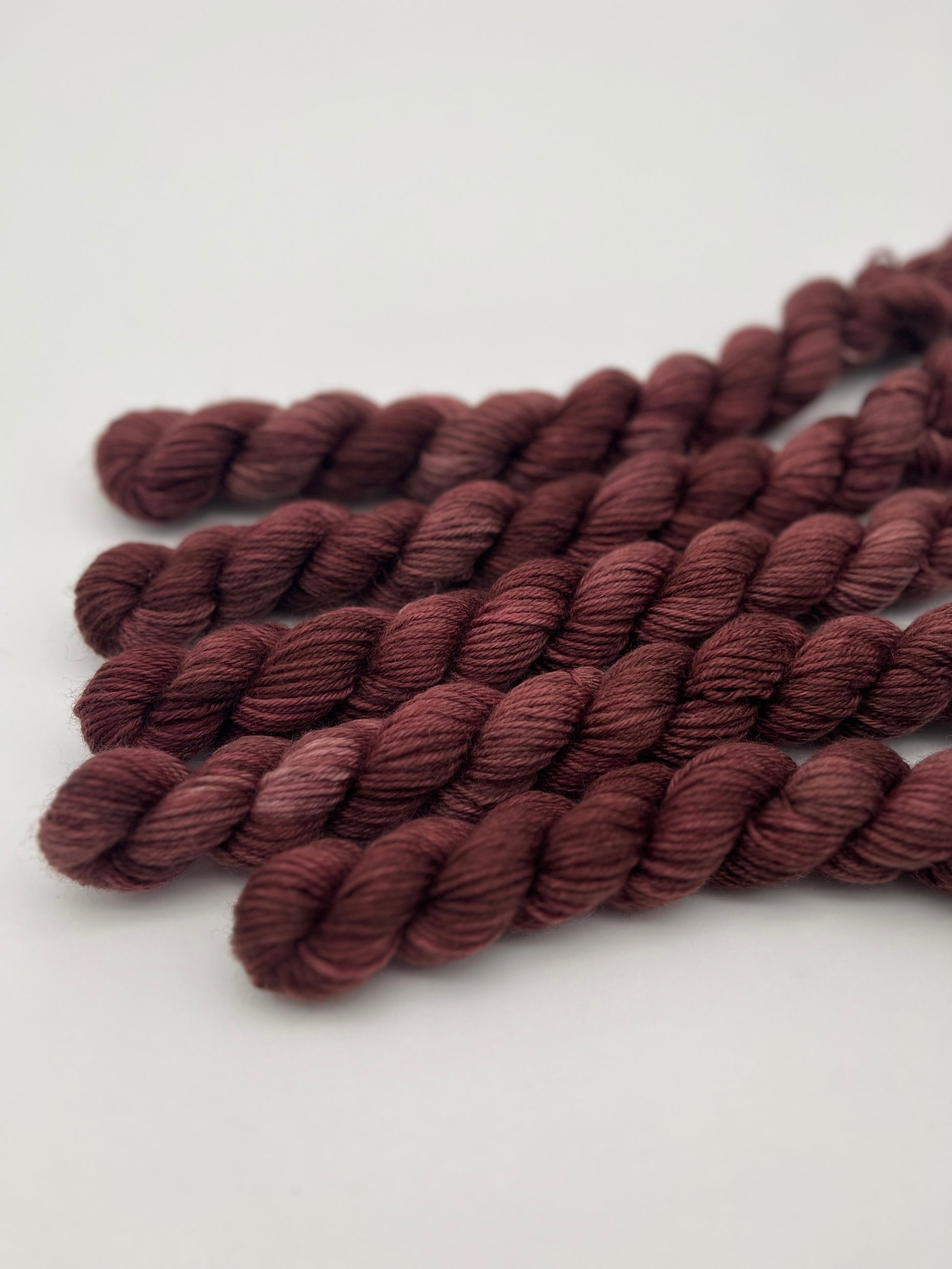 Unsere sogenannten Semisolids sind einfarbig handgefärbte Garne. Sie eignen sich perfekt für Colorworks oder schlichtere Projekte. Das besondere ist, dass sie dennoch unterschiedliche Variationen aufweisen und jedes Garn ein Unikat ist.