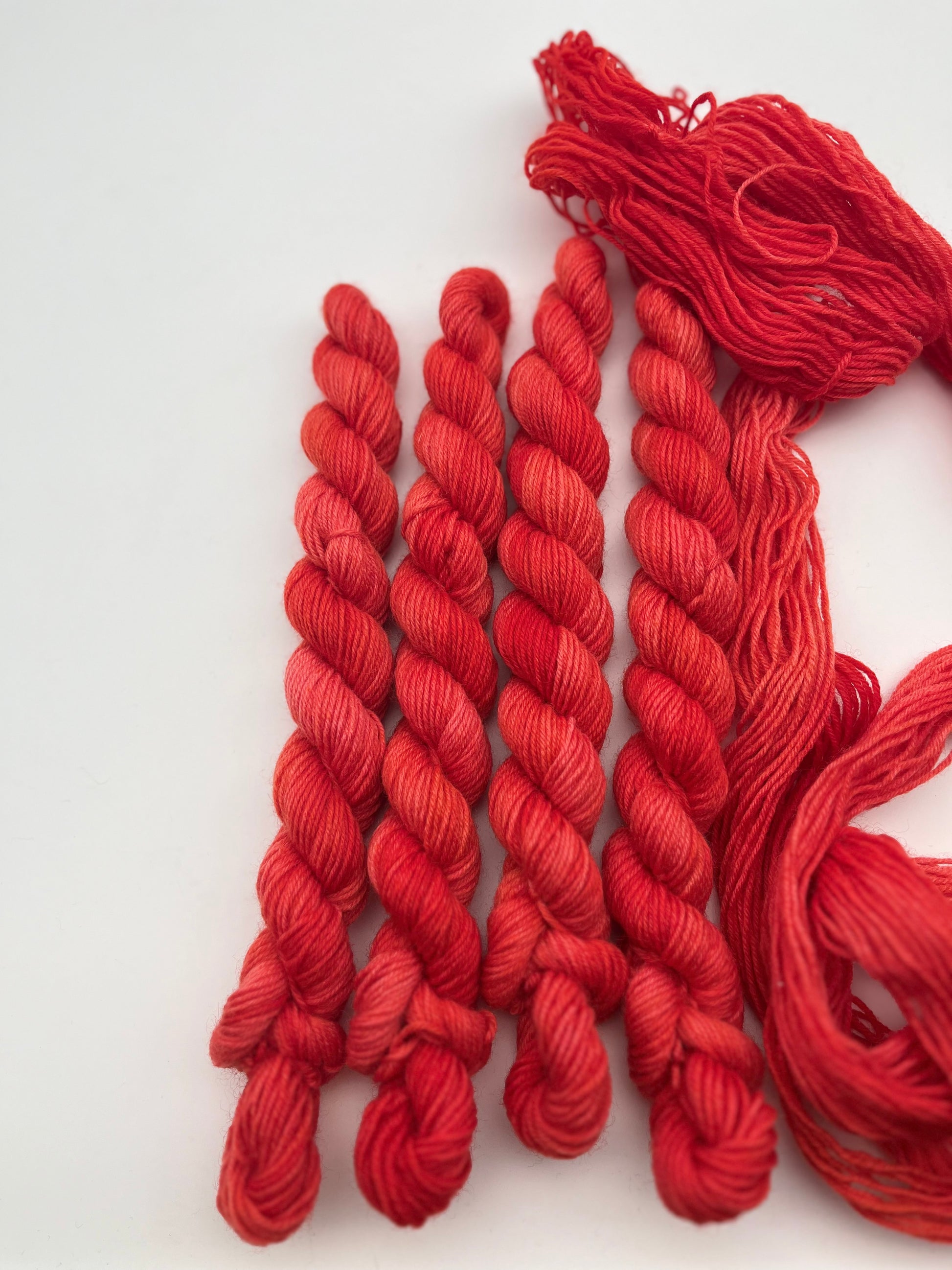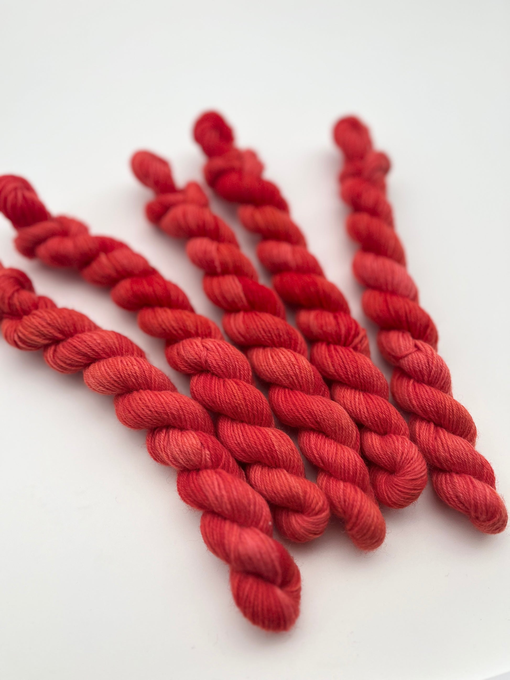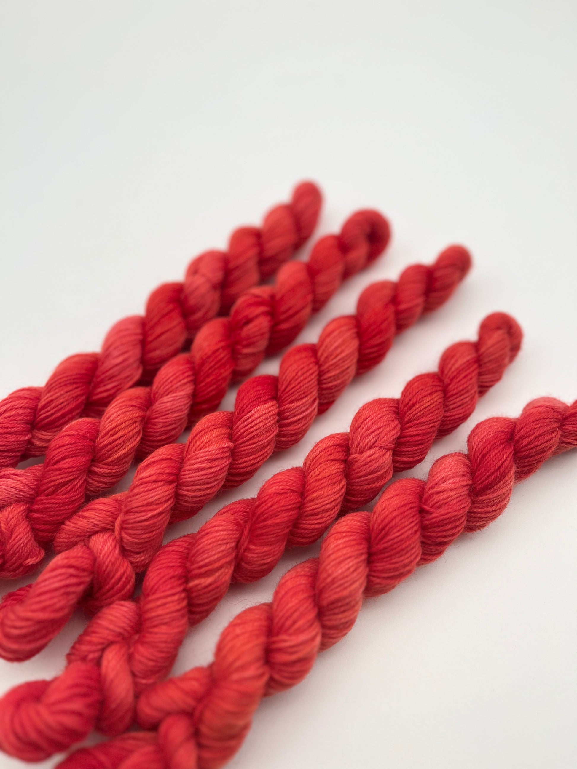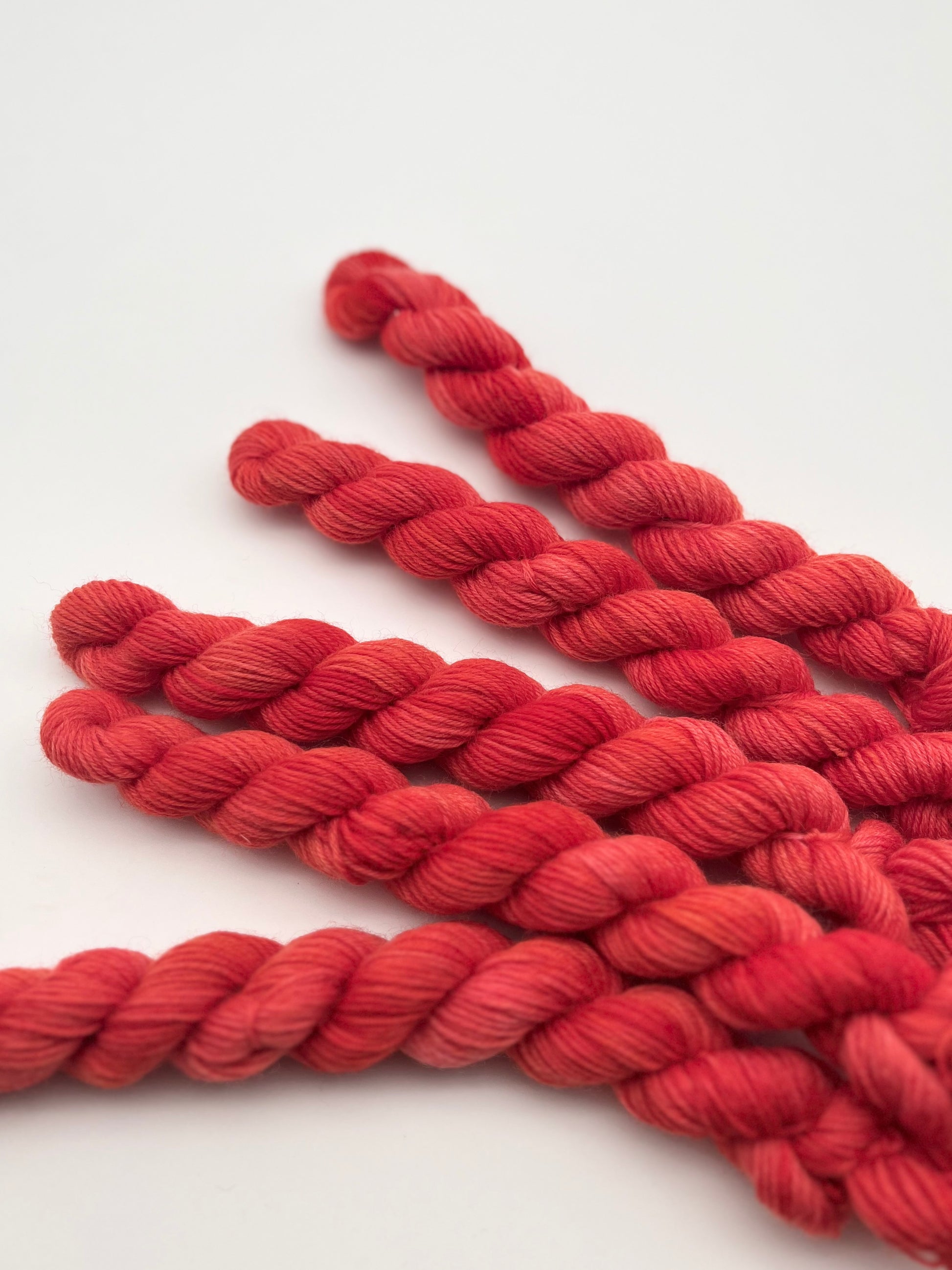 Unsere sogenannten Tonals sind einfarbig handgefärbte Garne. Sie eignen sich perfekt für Colorworks oder schlichtere Projekte. Das besondere ist, dass sie dennoch unterschiedliche Variationen aufweisen und jedes Garn ein Unikat ist.