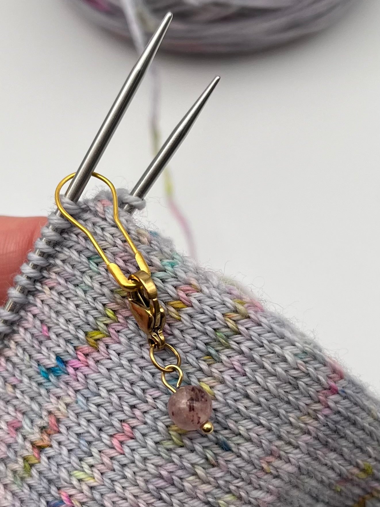 Achtung: Der Artikel beinhaltet nur den oder die gezeigten Maschenmarkierer. Wolle, Strickstücke oder Nadeln sind nicht enthalten.