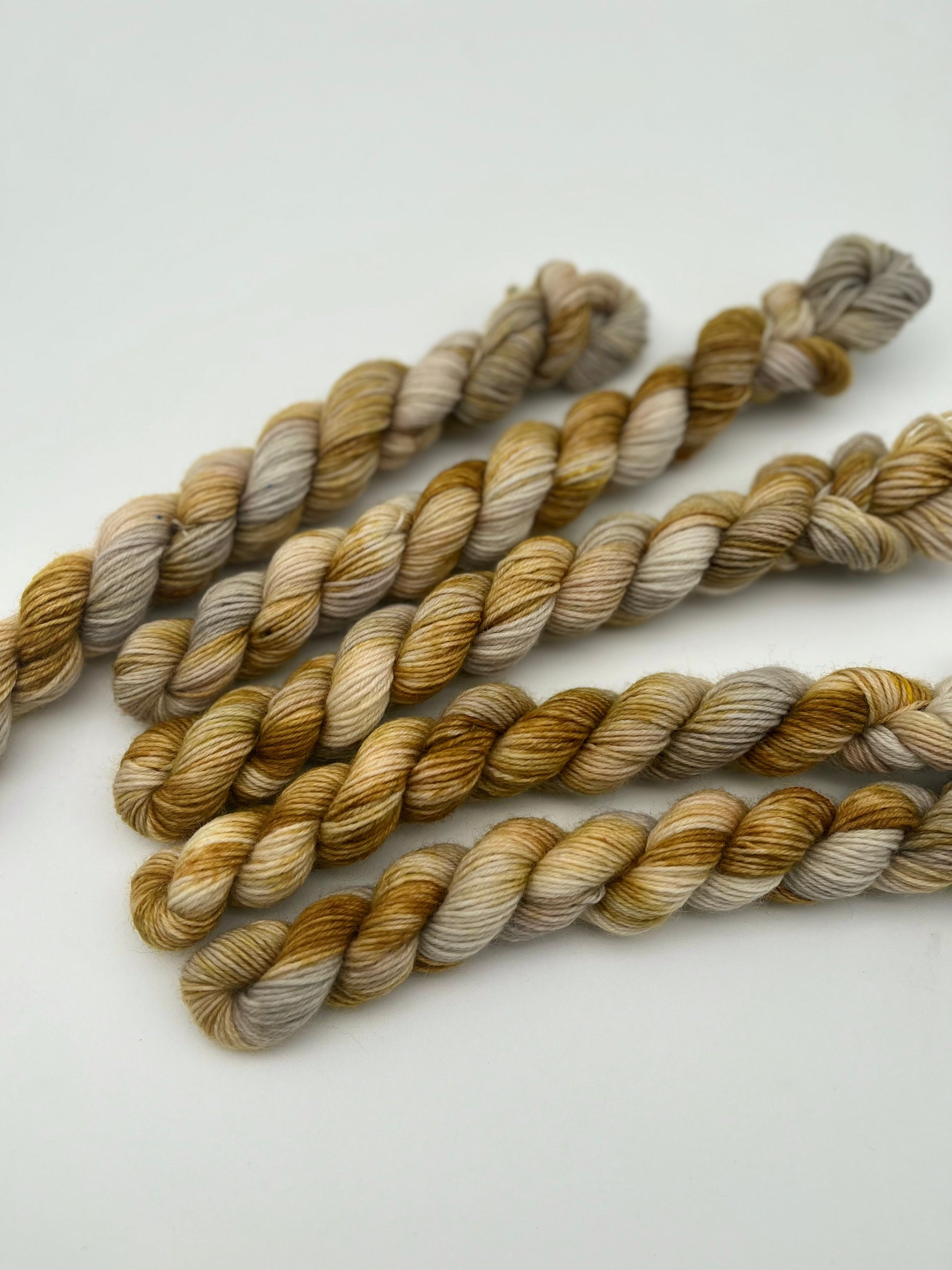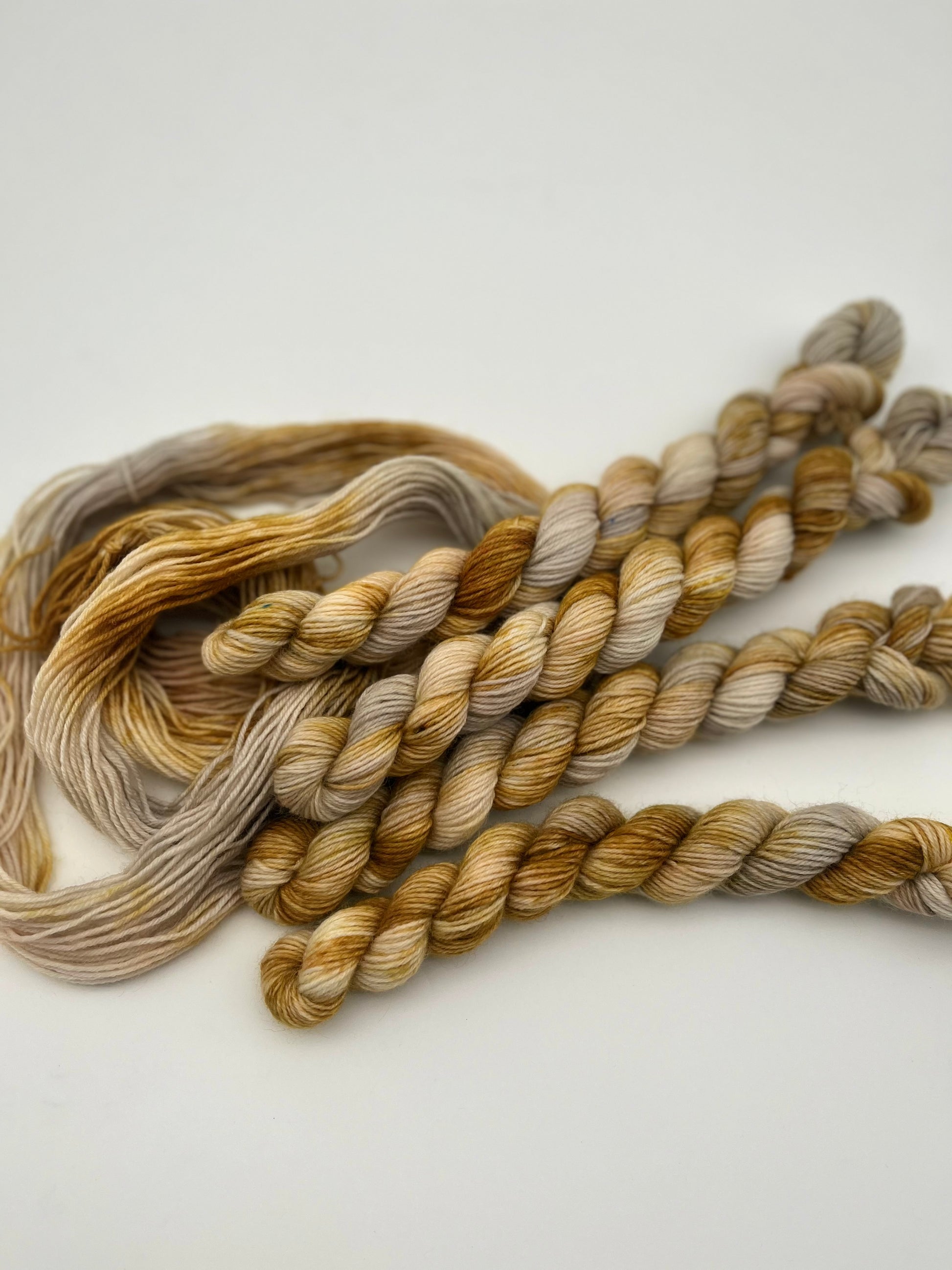 Wir färben unsere Garne in kleinen Chargen, weshalb es passieren kann, dass auch mal größere Farbunterschiede auftreten. Um das zu vermeiden, haben wir uns ein spezielles System überlegt. Unsere Produktbilder werden regelmäßig aktualisiert. Das heißt du siehst auf den Bildern genau die Garne, die gerade auf Lager sind oder zumindest Garne, die aus der gleichen Charge stammen. Aus diesem Grund werden Garne erst dann nachgefärbt, wenn die Färbung bereits ausverkauft ist. Solltest du eine größere Menge benötigen, als auf Lager ist kannst du uns jederzeit kontaktieren.
