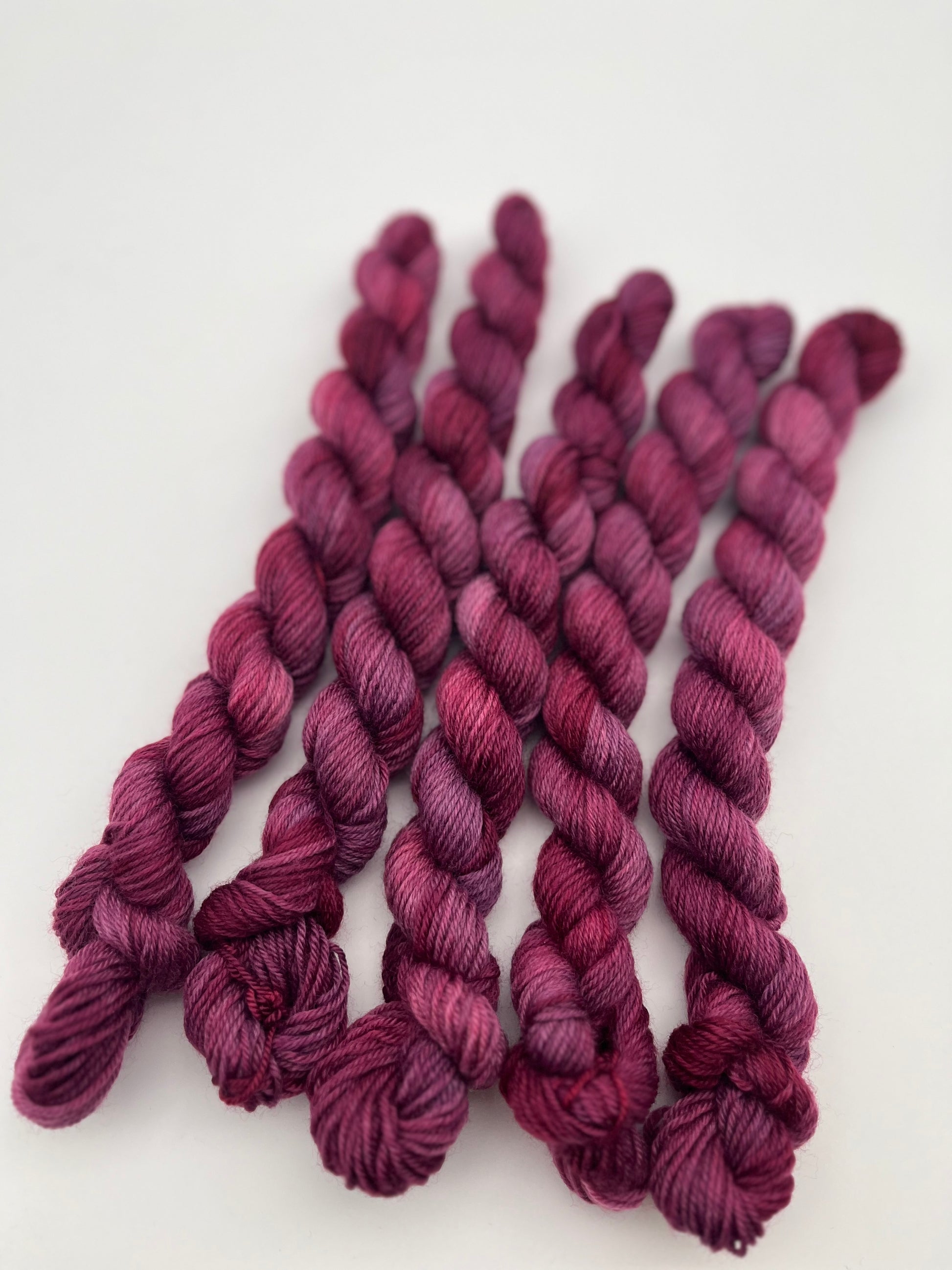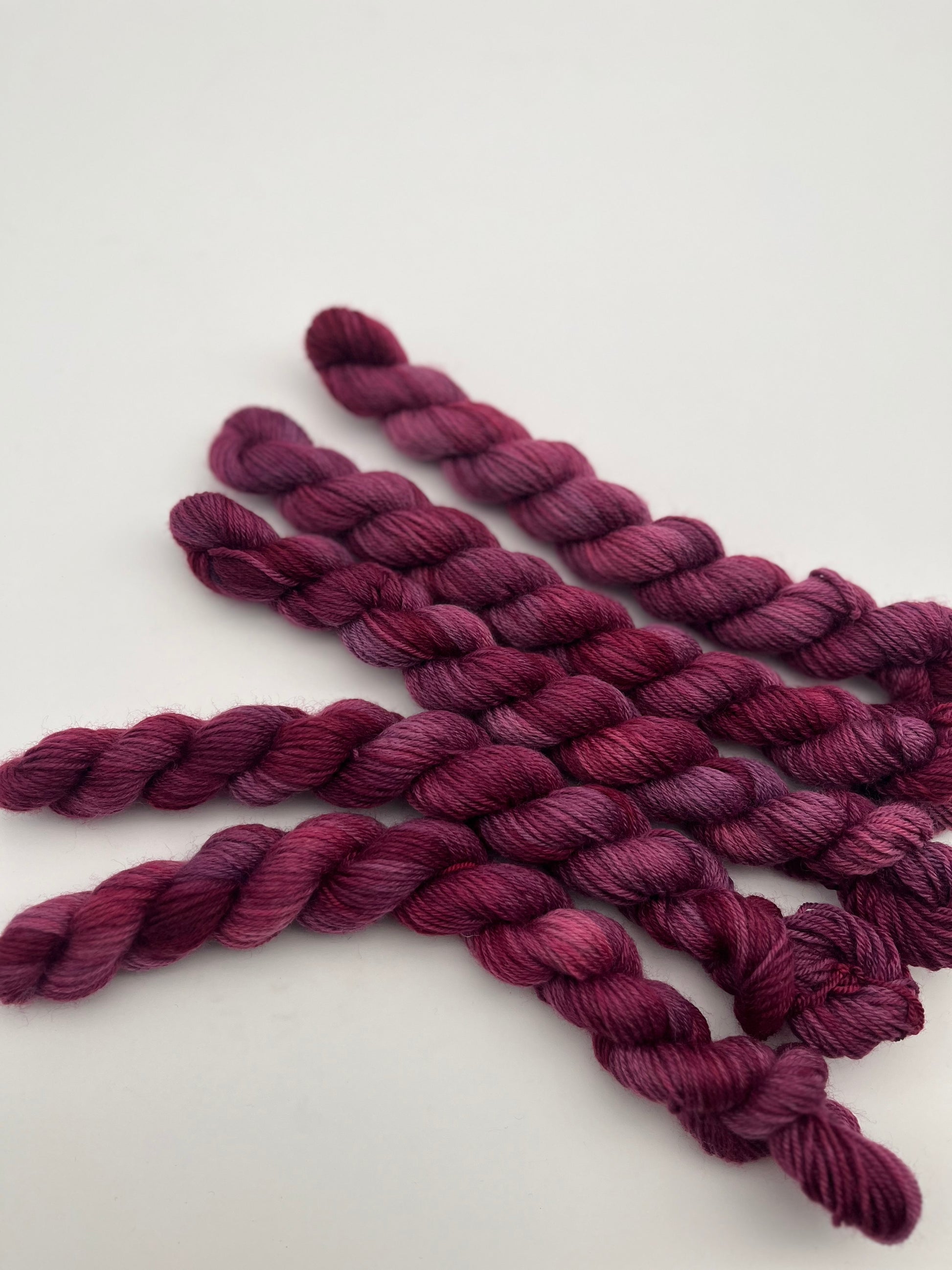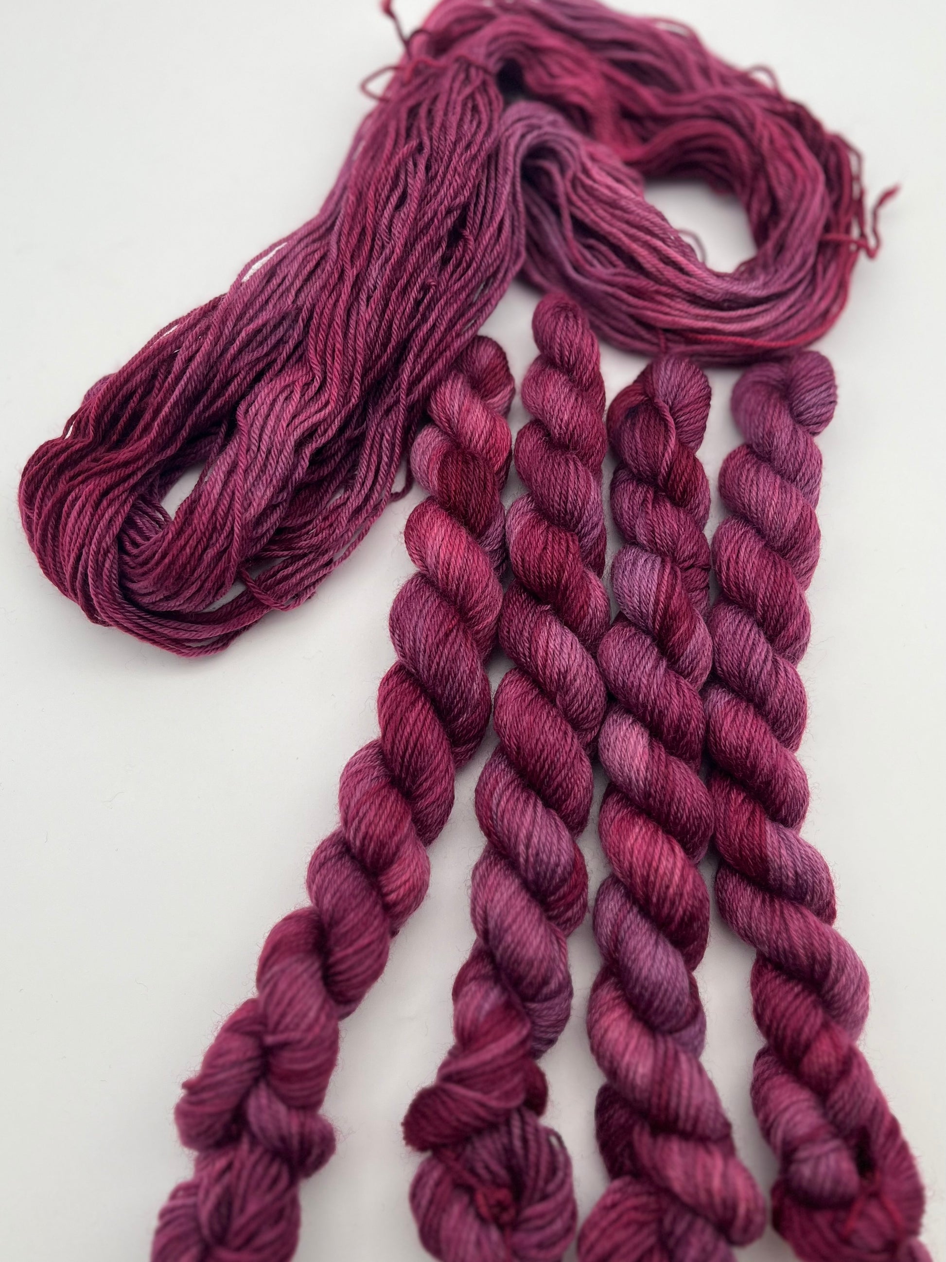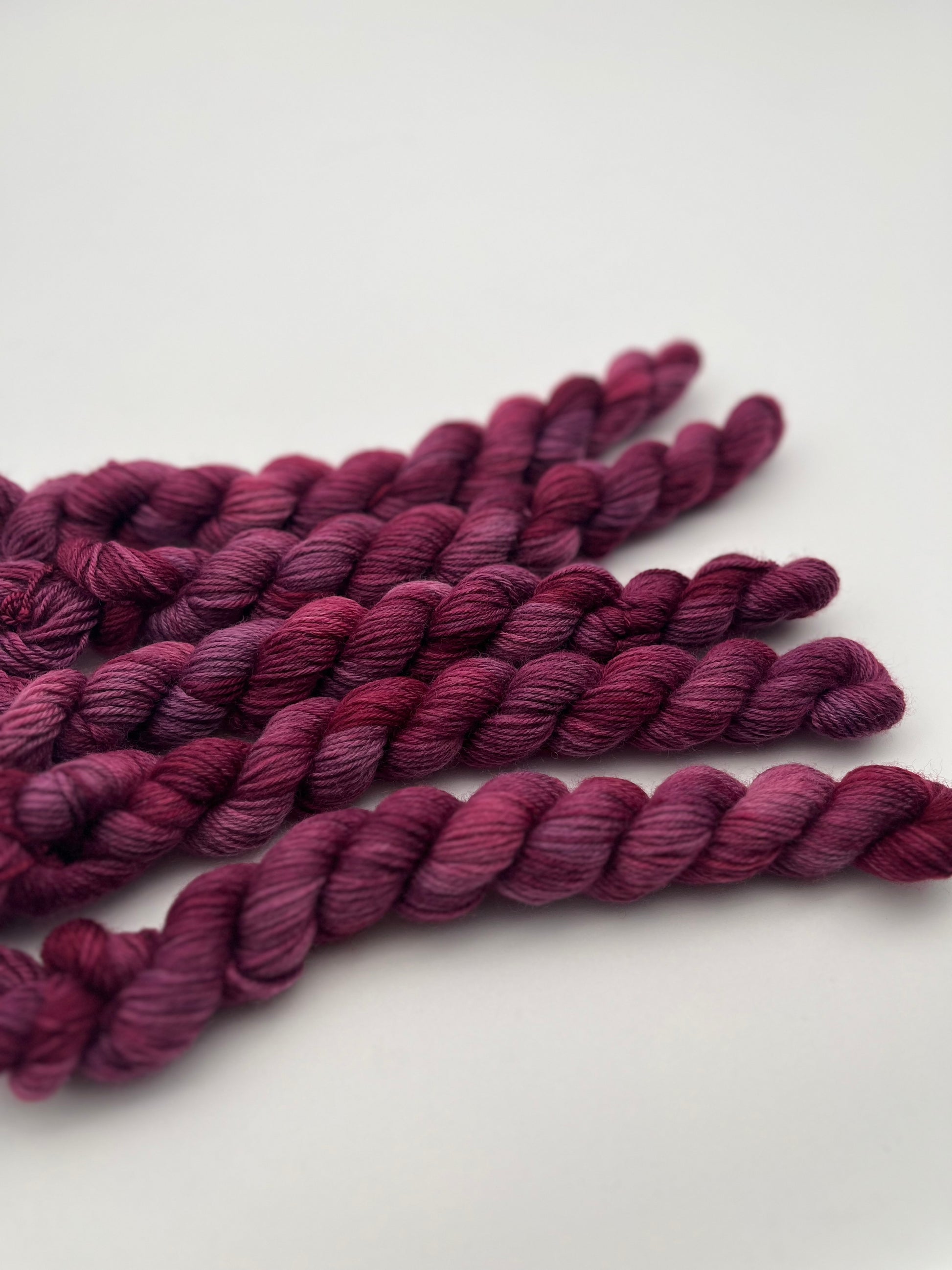 Unsere sogenannten Semisolids sind einfarbig handgefärbte Garne. Sie eignen sich perfekt für Colorworks oder schlichtere Projekte. Das besondere ist, dass sie dennoch unterschiedliche Variationen aufweisen und jedes Garn ein Unikat ist.