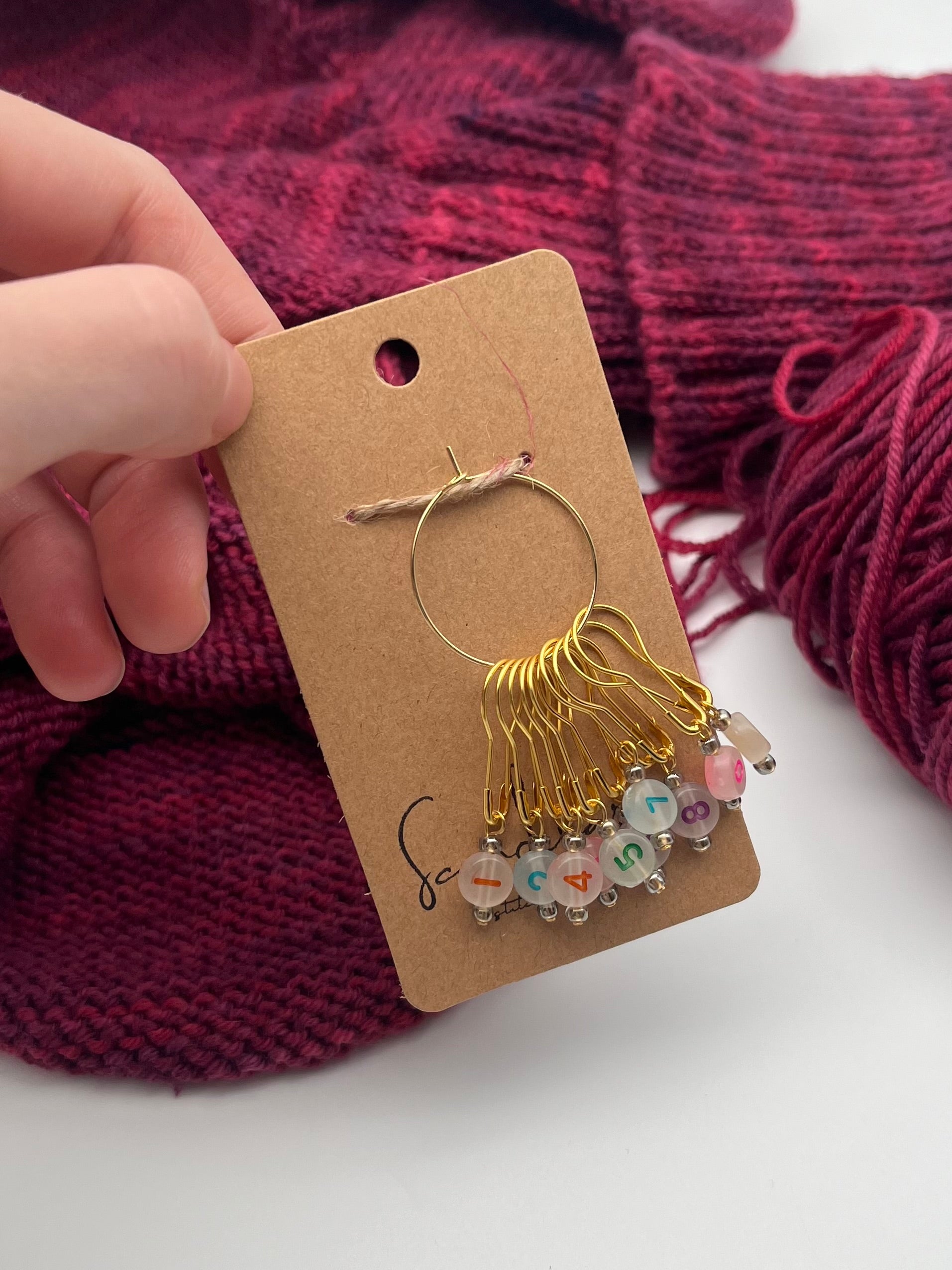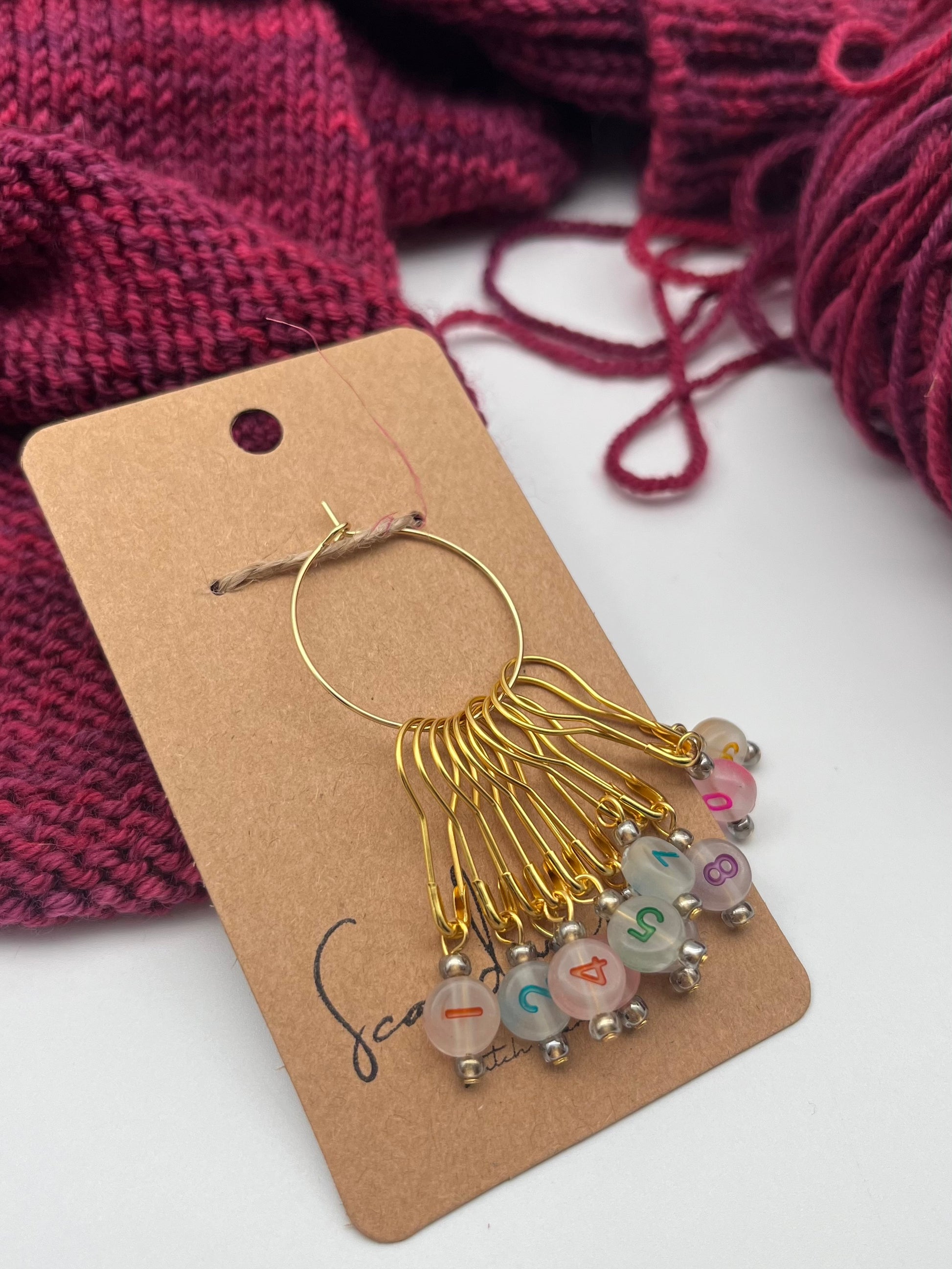 Handgefertigte Maschenmarkierer für deine Projekte.