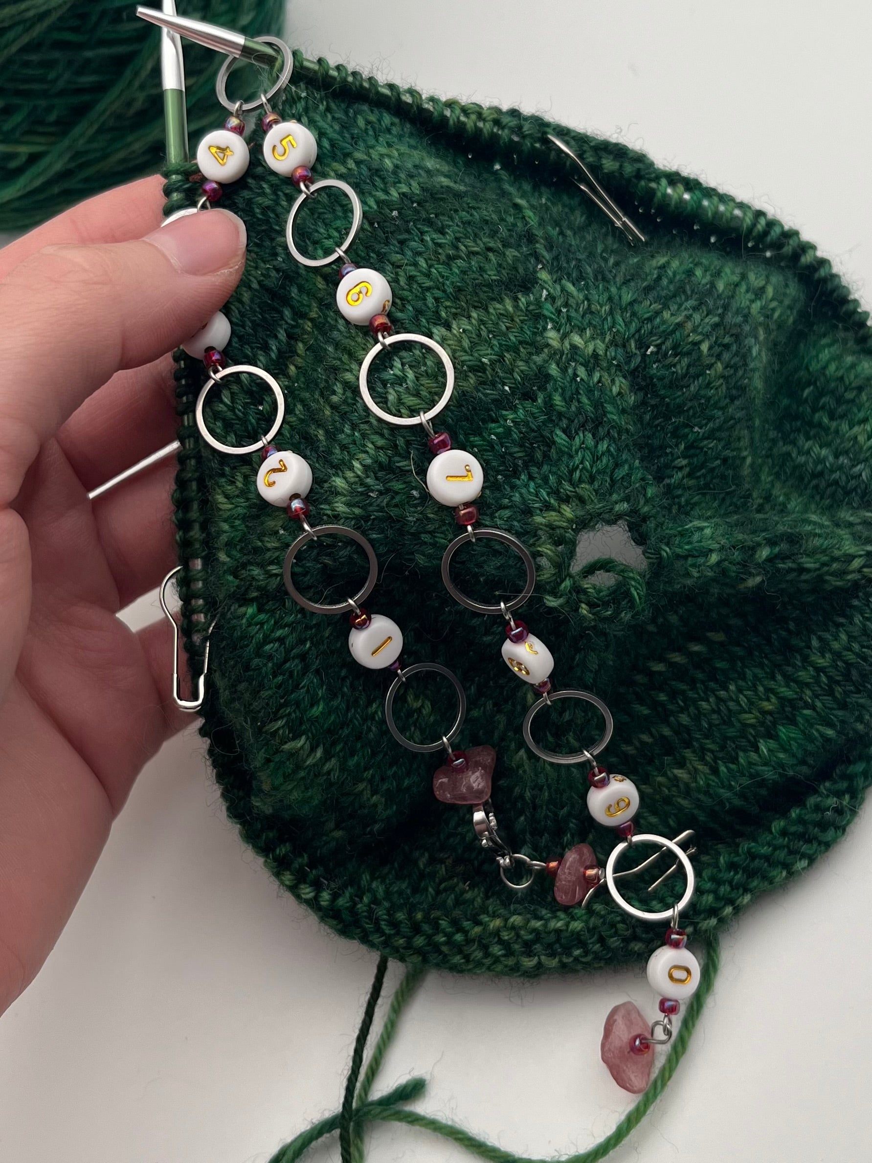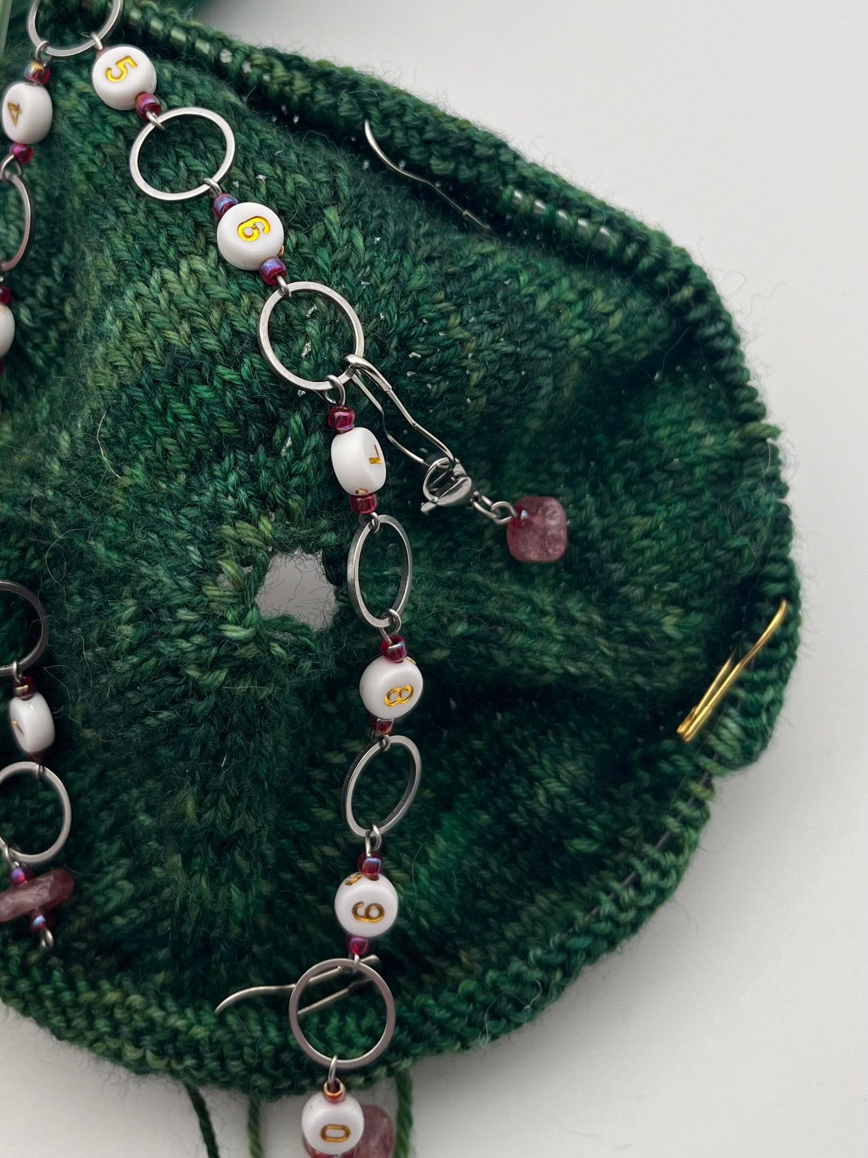 Achtung: Der Artikel beinhaltet nur den oder die gezeigten Maschenmarkierer. Wolle, Strickstücke oder Nadeln sind nicht enthalten.
