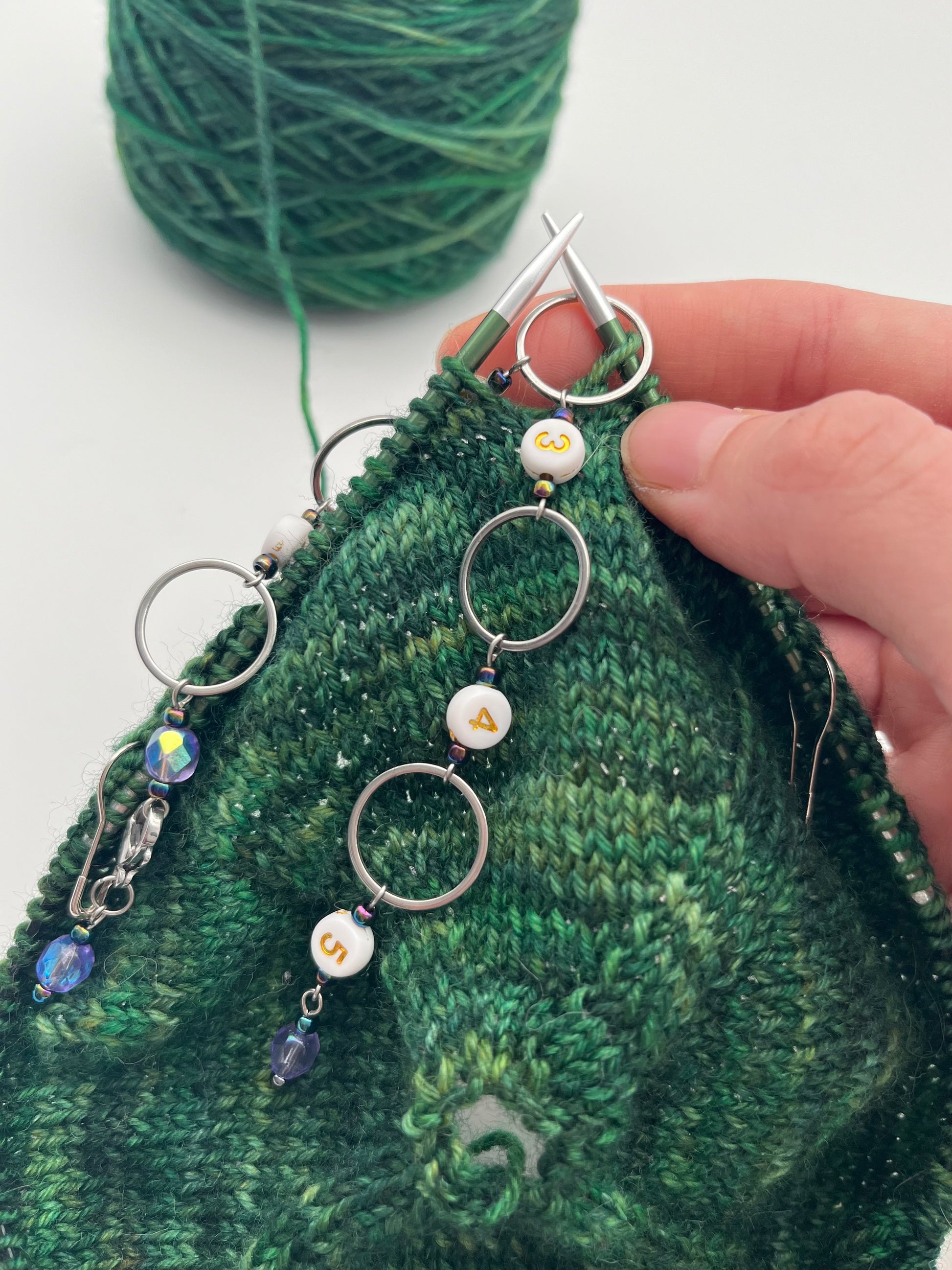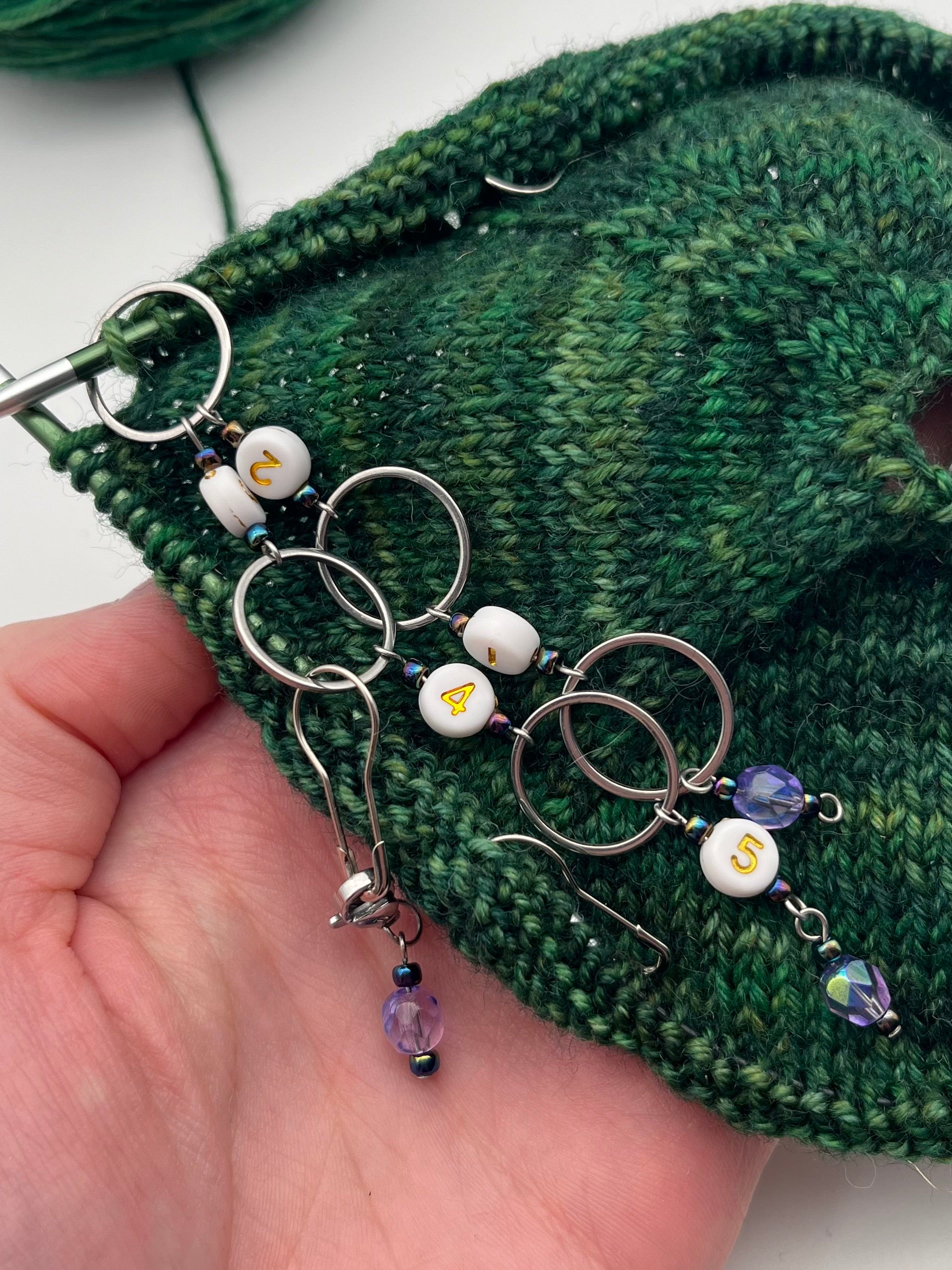 Achtung: Der Artikel beinhaltet nur den oder die gezeigten Maschenmarkierer. Wolle, Strickstücke oder Nadeln sind nicht enthalten.