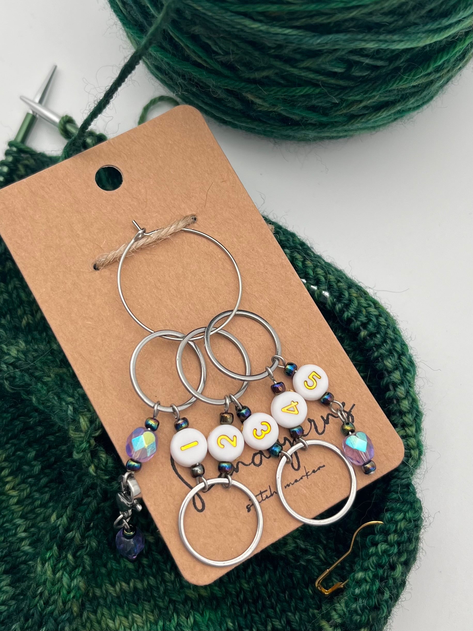 Handgefertigte Maschenmarkierer für deine Projekte.