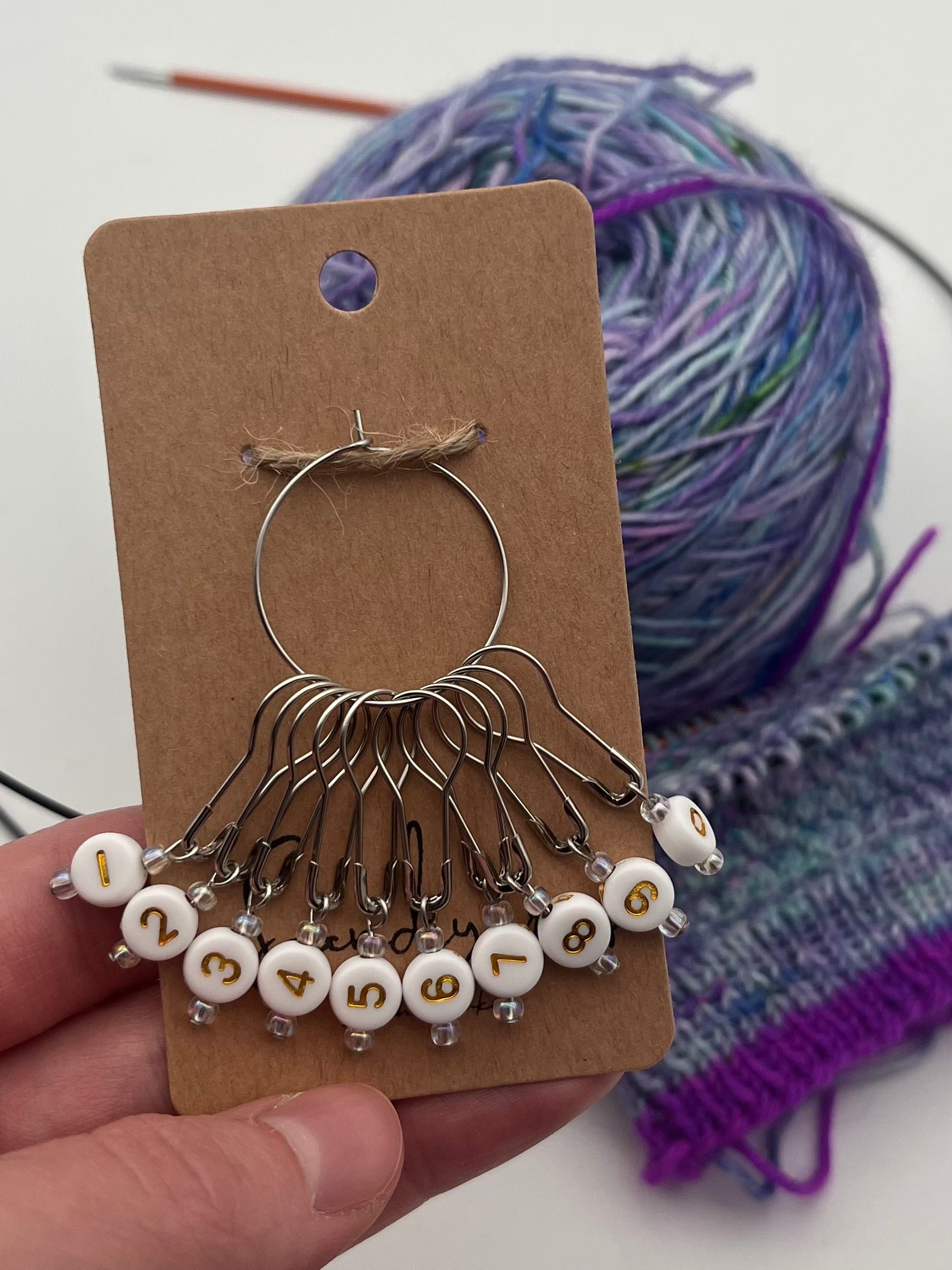 Handgefertigte Maschenmarkierer für deine Projekte.
