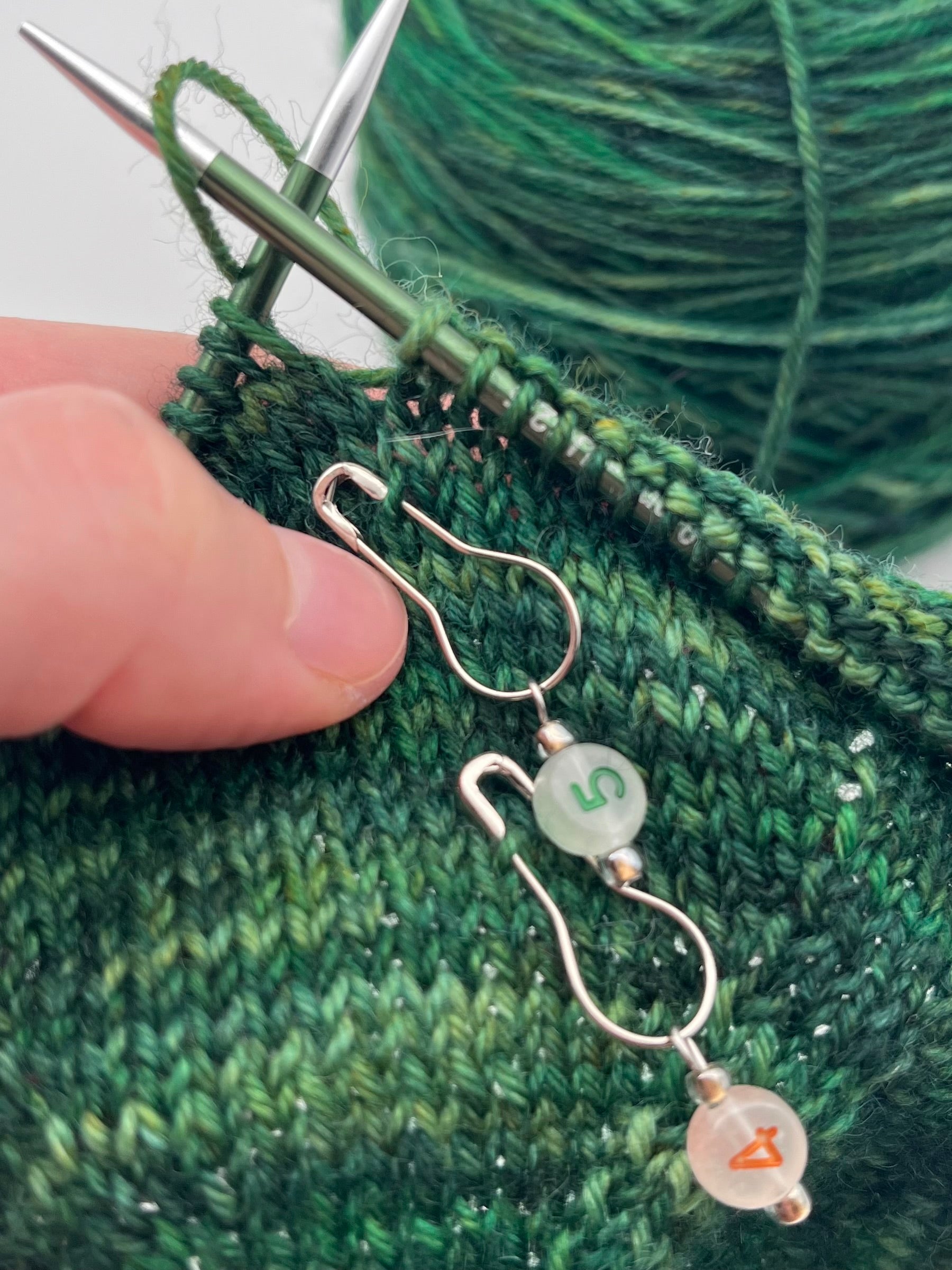 Achtung: Der Artikel beinhaltet nur den oder die gezeigten Maschenmarkierer. Wolle, Strickstücke oder Nadeln sind nicht enthalten.