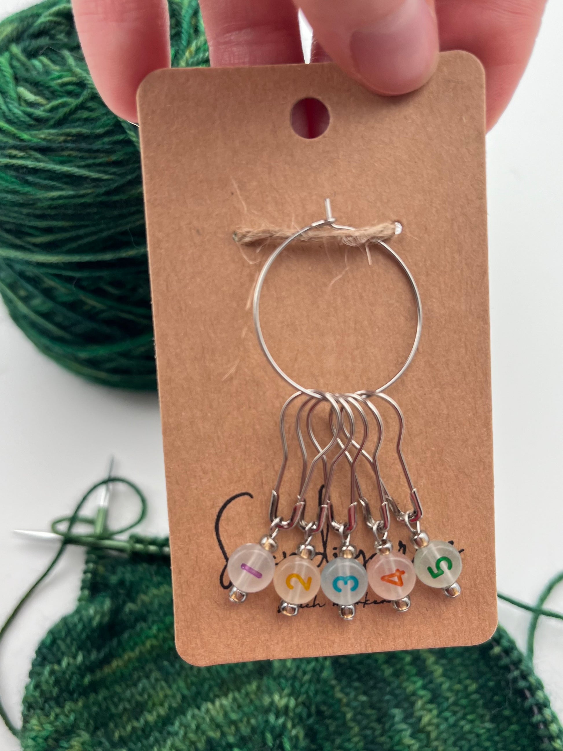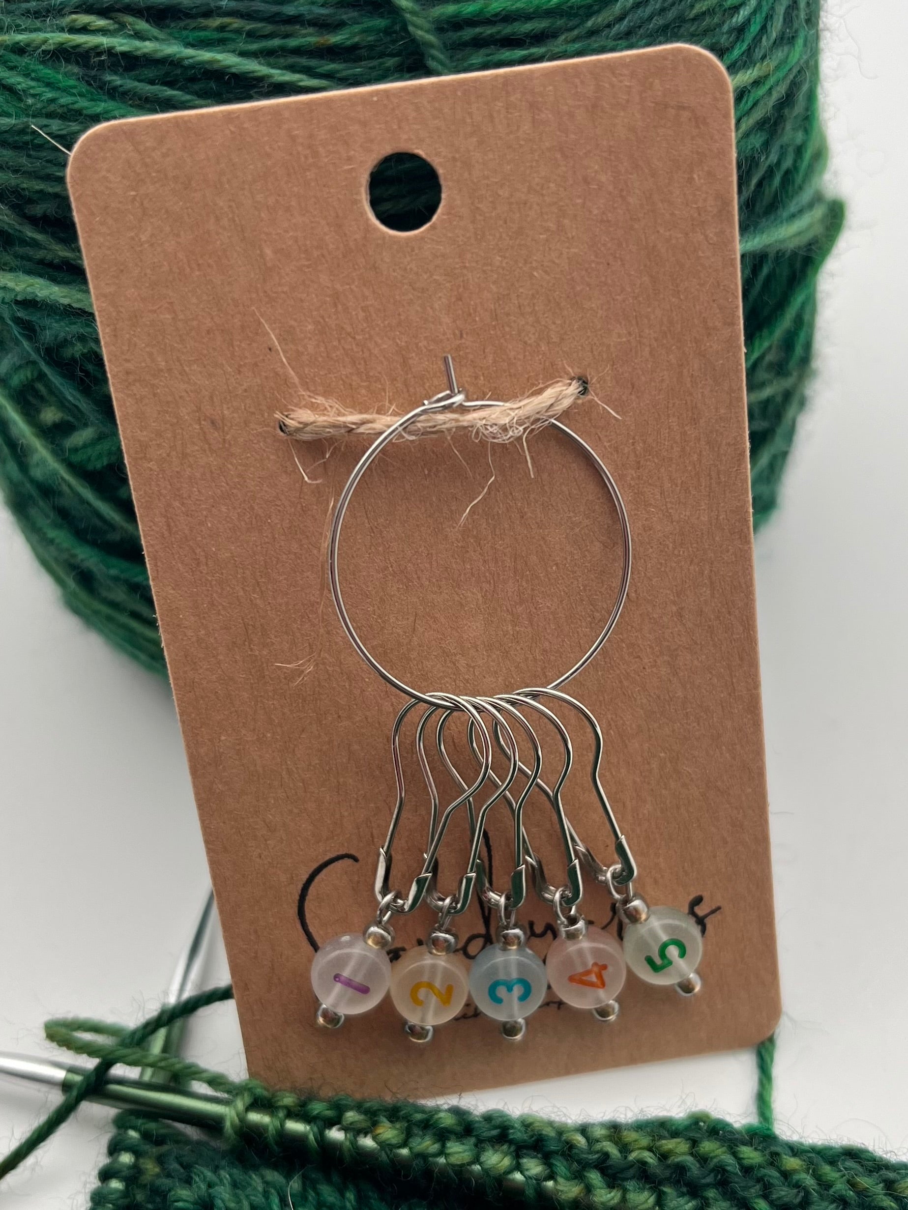 Handgefertigte Maschenmarkierer für deine Projekte.