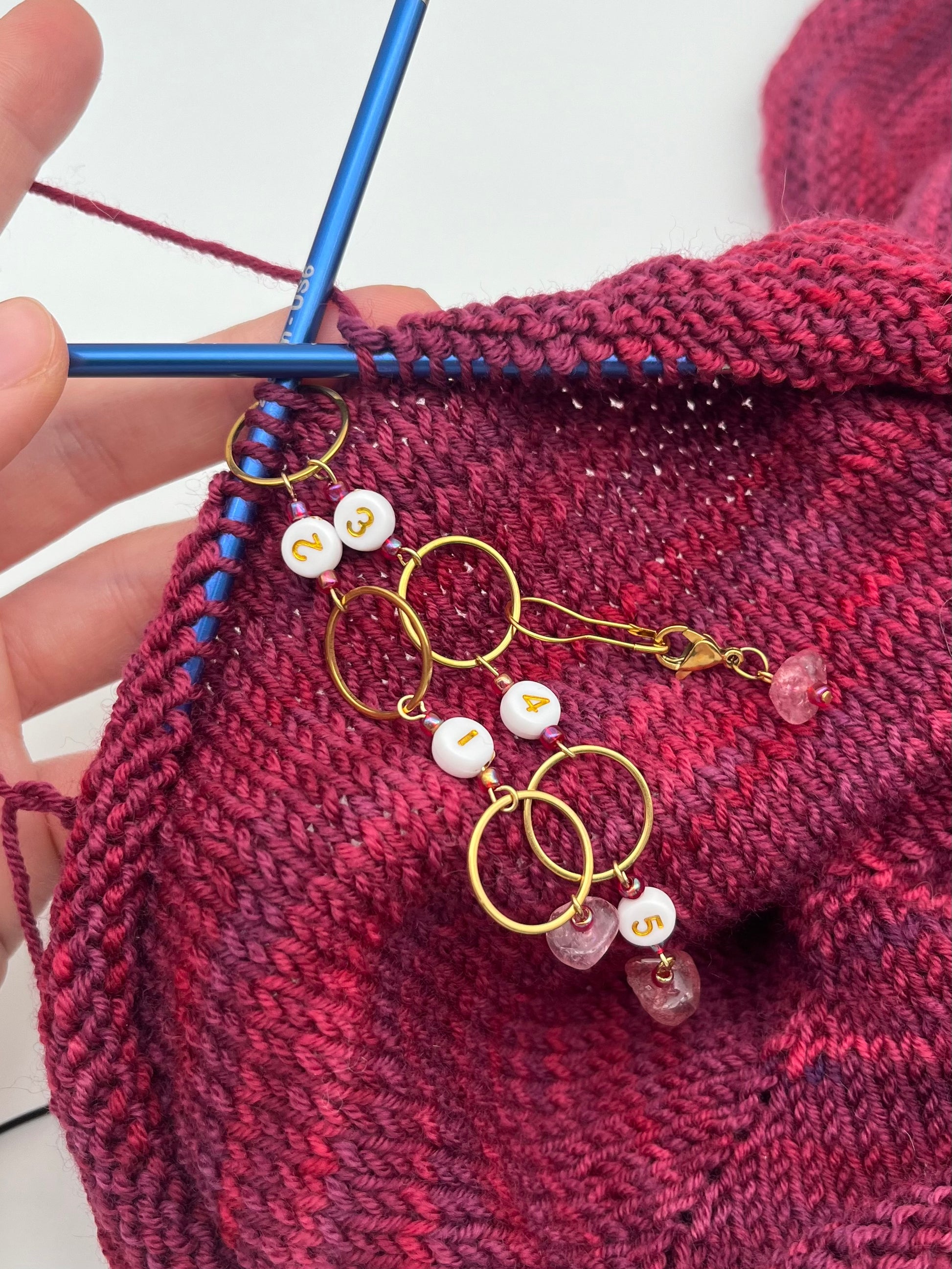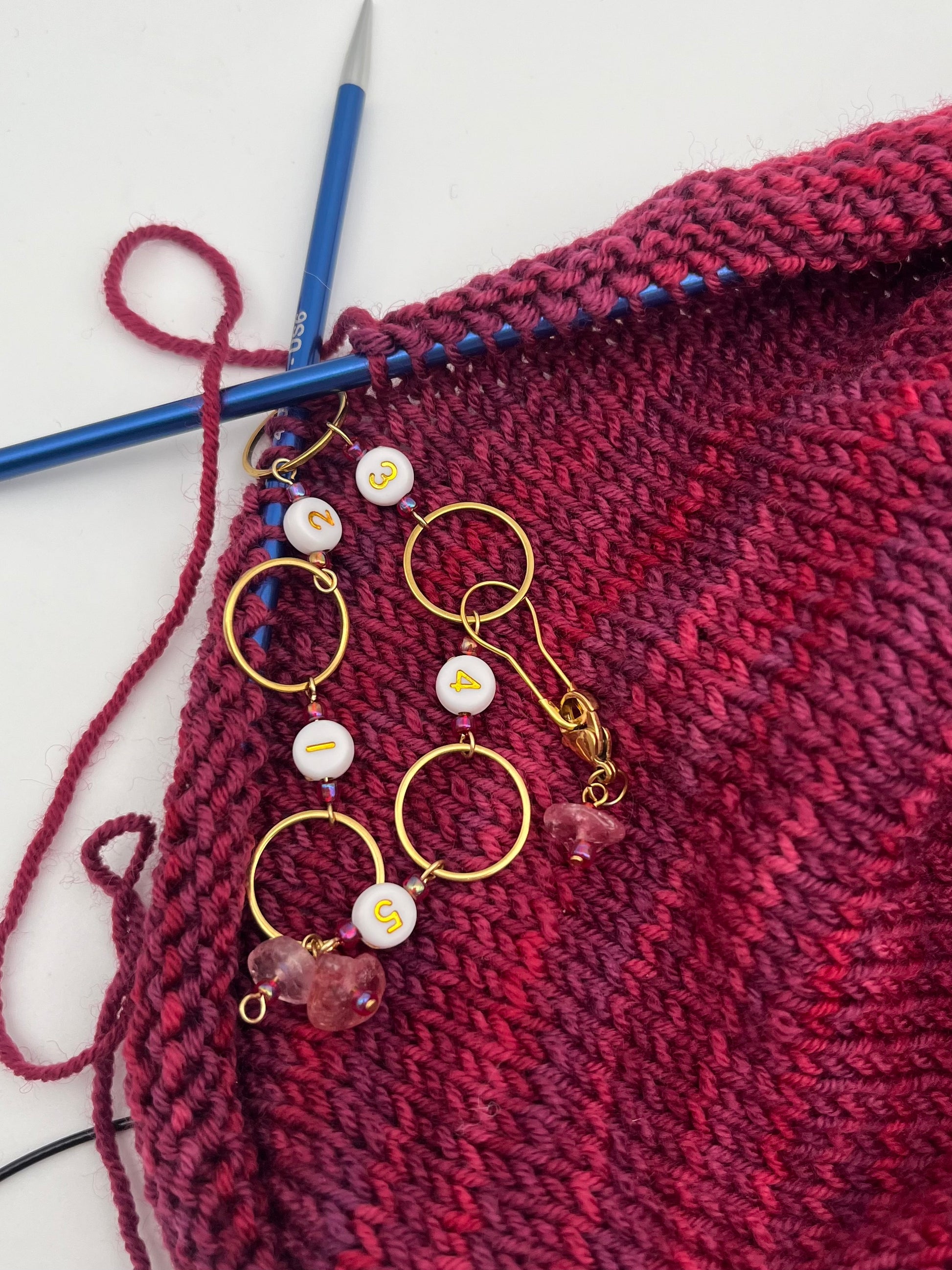 Handgefertigte Maschenmarkierer für deine Projekte.