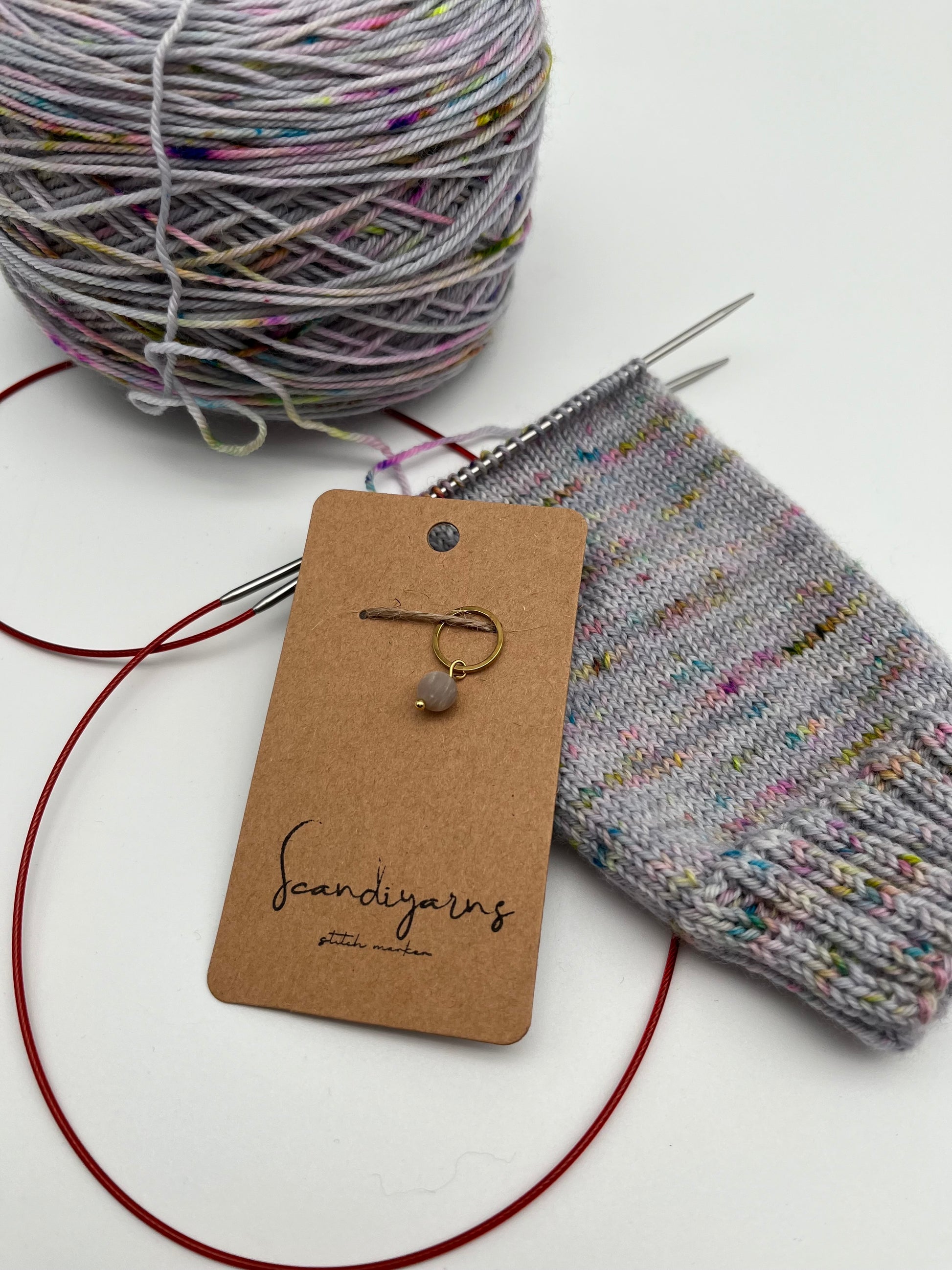 Die geschlossenen Ringe sind zum Stricken geeignet und zeigen euch Ende oder Anfang von Runden beim Stricken an. Sie können euch aufgrund der geschlossenen Form nicht von der Nadel rutschen.