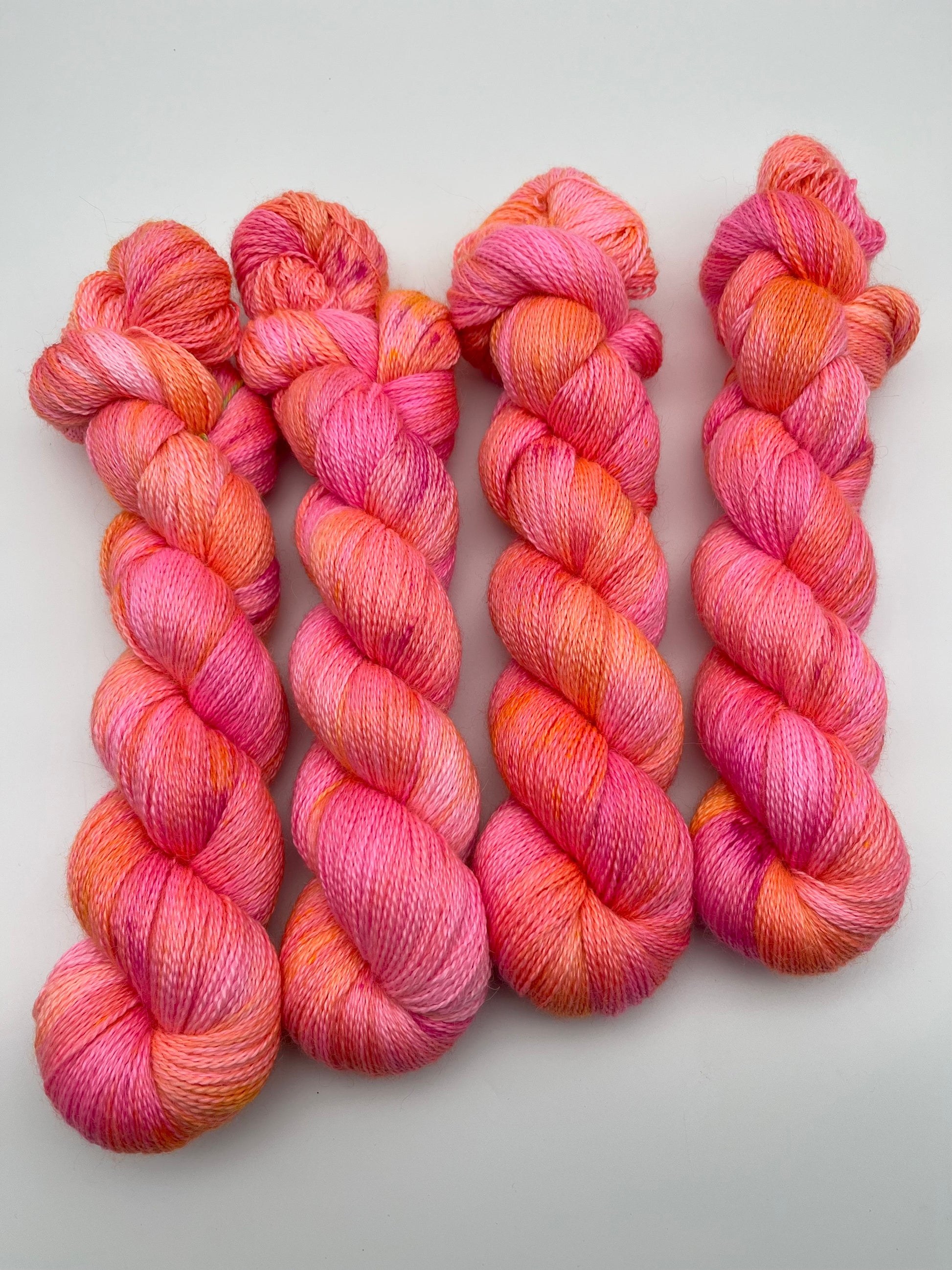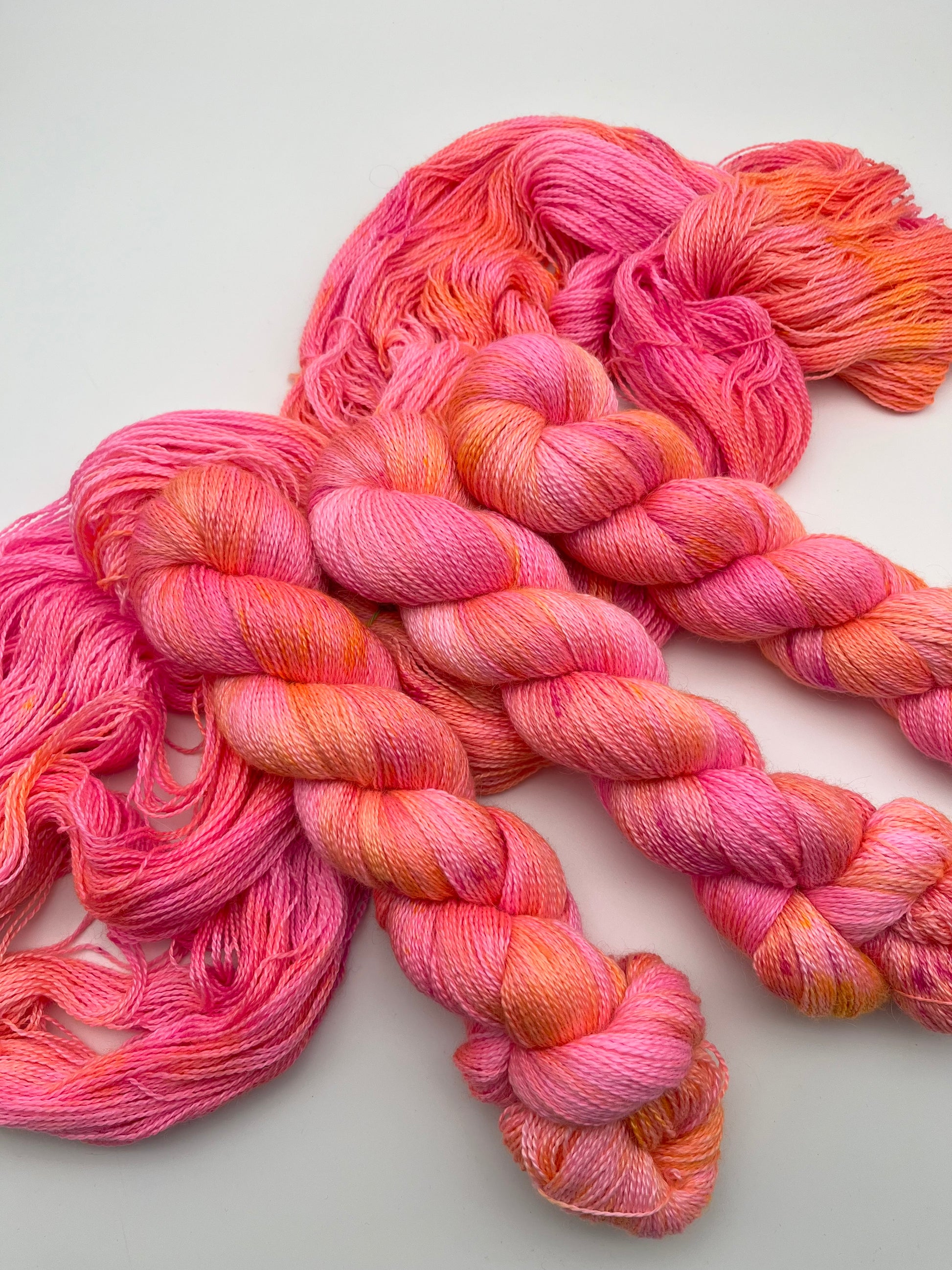 Wir färben unsere Garne in kleinen Chargen, weshalb es passieren kann, dass auch mal größere Farbunterschiede auftreten. Daher empfehlen wir immer die Stränge beim Verarbeiten zu alternieren. Außerdem haben wir uns ein spezielles System überlegt. Unsere Produktbilder werden regelmäßig aktualisiert. Das heißt du siehst auf den Bildern genau die Garne, die gerade auf Lager sind oder zumindest Garne, die aus der gleichen Charge stammen. Aus diesem Grund werden Garne erst dann nachgefärbt, wenn die Färbung bereits ausverkauft ist. Solltest du eine größere Menge benötigen, als auf Lager ist, kannst du uns jederzeit kontaktieren oder ganz einfach eine Auftragsfärbung im Shop veranlassen. Für bereits ausverkaufte Färbungen kannst du ganz einfach eine Vorbestellung in Auftrag geben. So gewährleisten wir, dass du Garne aus einer Charge erhältst.